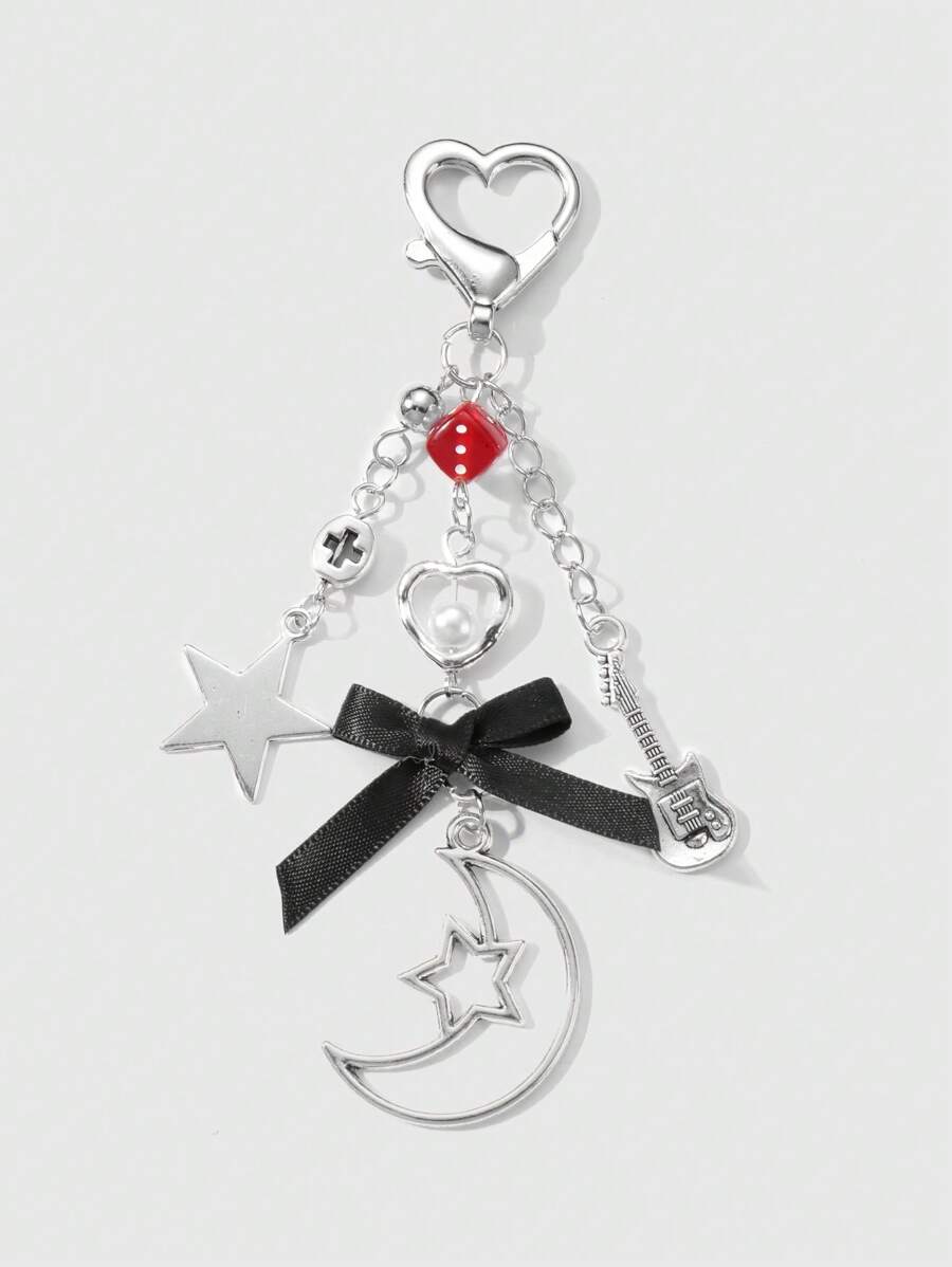 Kawaii Set de 2 piezas de combinación de colgantes de cadena de plata con estilo gótico de moda Y2K que incluye encantos de corazón, estrella, gato, calavera, cruz, mariposa, sonrisa, sol, luna, ideal para niñas, amigos, parejas, uso diario o regalos