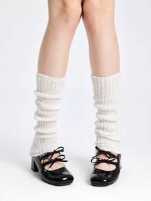 Kawaii 3 pares de calentadores de piernas de punto de colores aleatorios, calentadores de piernas sólidos de alta calidad de estilo punk minimalista en negro, blanco y marrón, calentadores de piernas de estilo escolar JK, calentadores de piernas versátiles de uso diario de punto