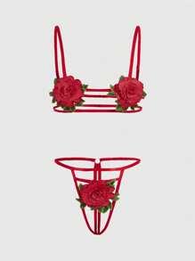 Kawaii Conjunto De Lencería Sexy Para Mujeres Con Diseño En 3d De Rosa