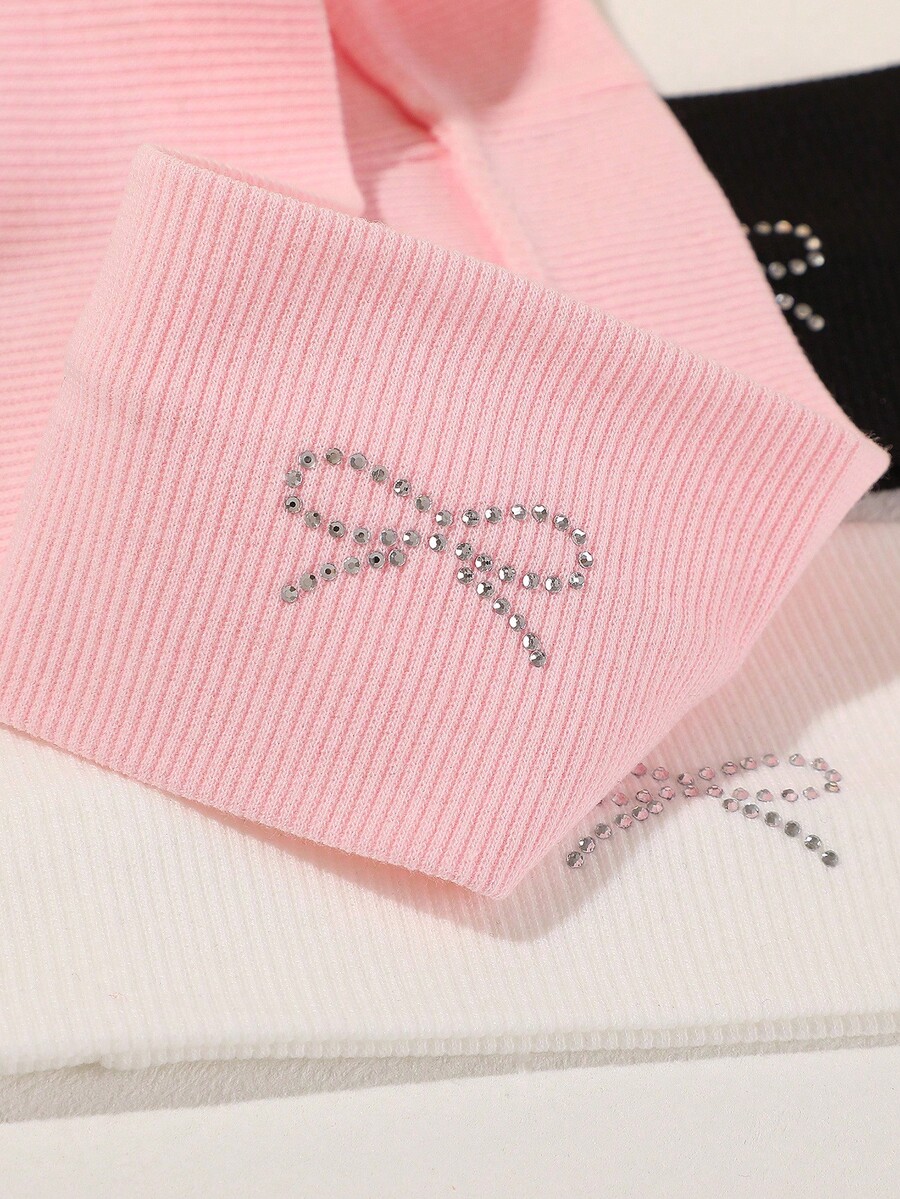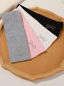 Kawaii 4 piezas Diademas deportivas simples de un solo color con lazo y cristales, diademas absorbentes y antideslizantes para mujeres, adecuadas para actividades al aire libre, baile urbano y uso diario