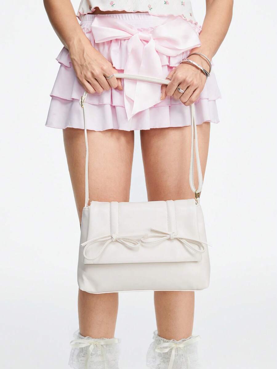 Kawaii Bolso grande tipo tote con lazo estilo ballet y capacidad para llevar cruzado para mujeres