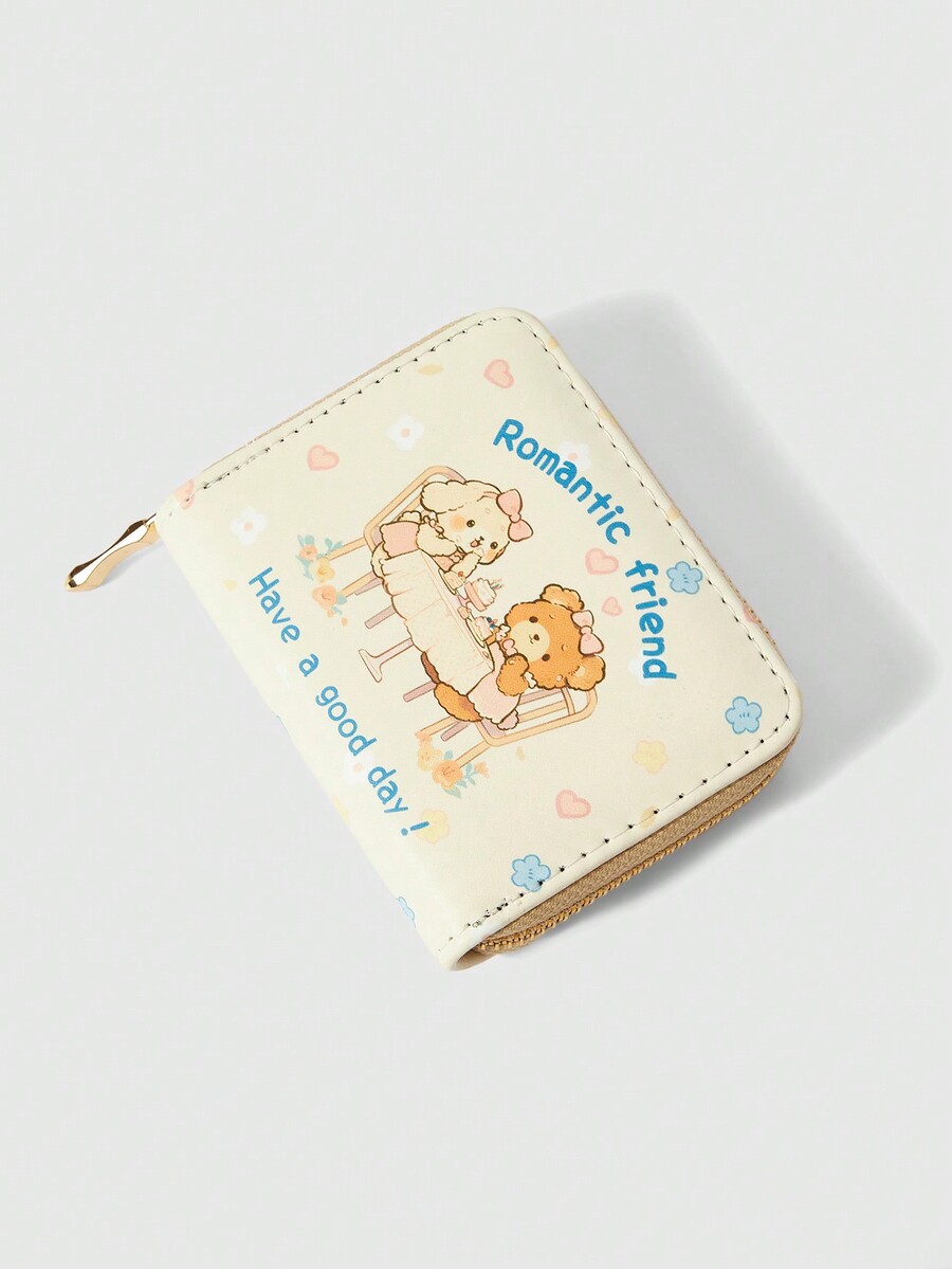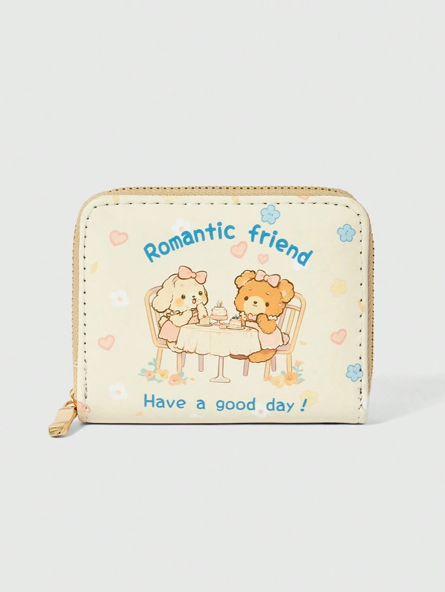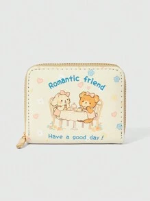 Kawaii Billetera mini de oso beige, billetera multifuncional con ranuras para tarjetas