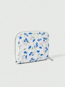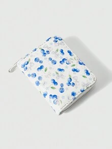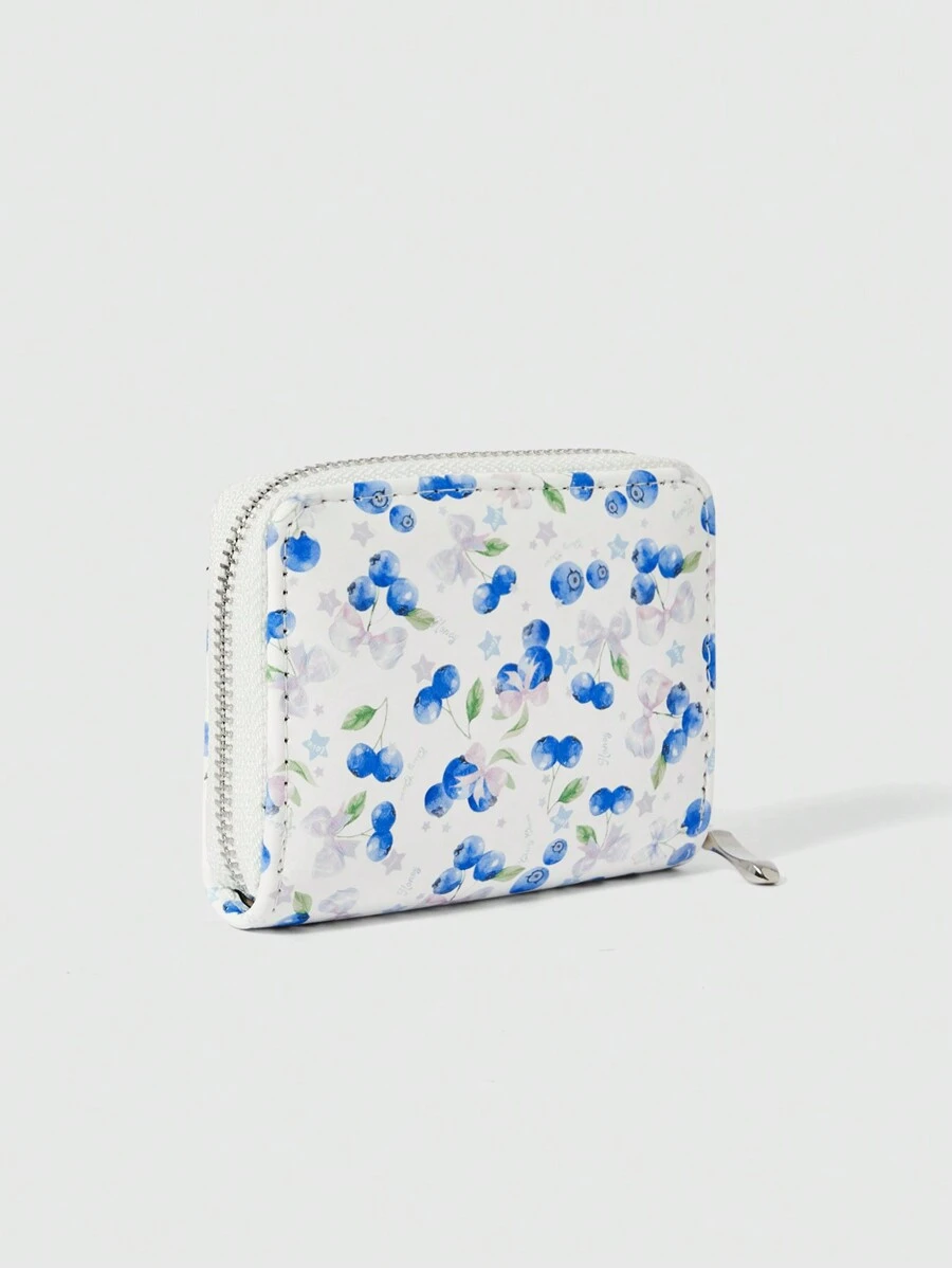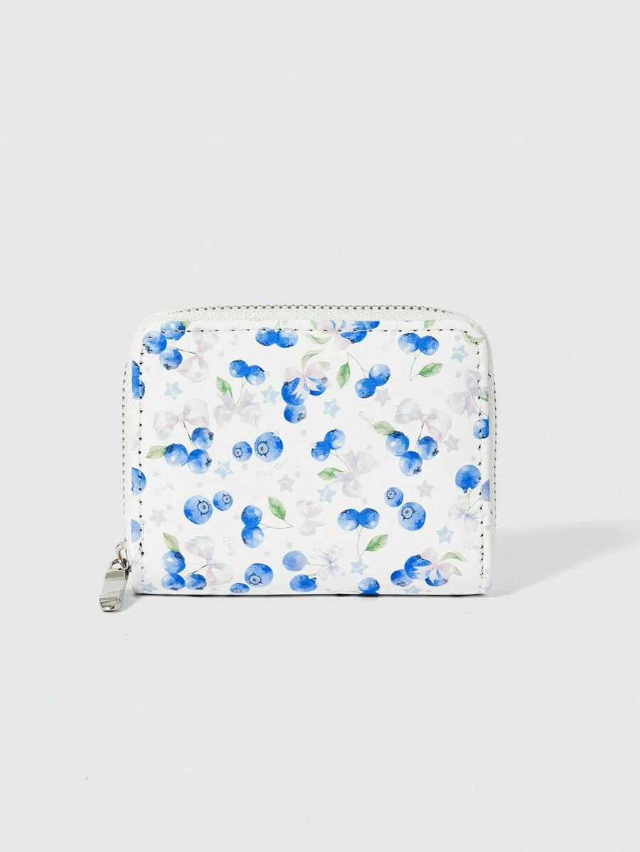 Kawaii Cartera corta con estampado de arándanos todo sobre, ranuras multifuncionales para tarjetas