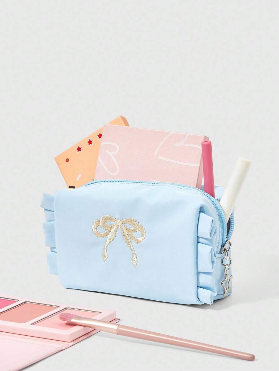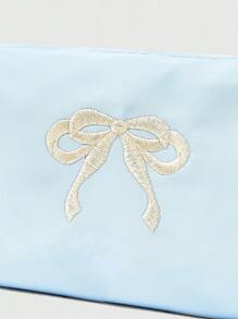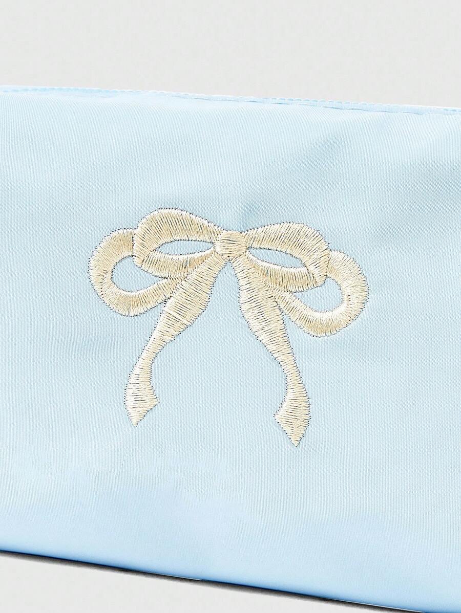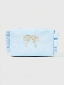 Kawaii Bolsa de cosméticos portátil con bordado de lazo y lazada linda