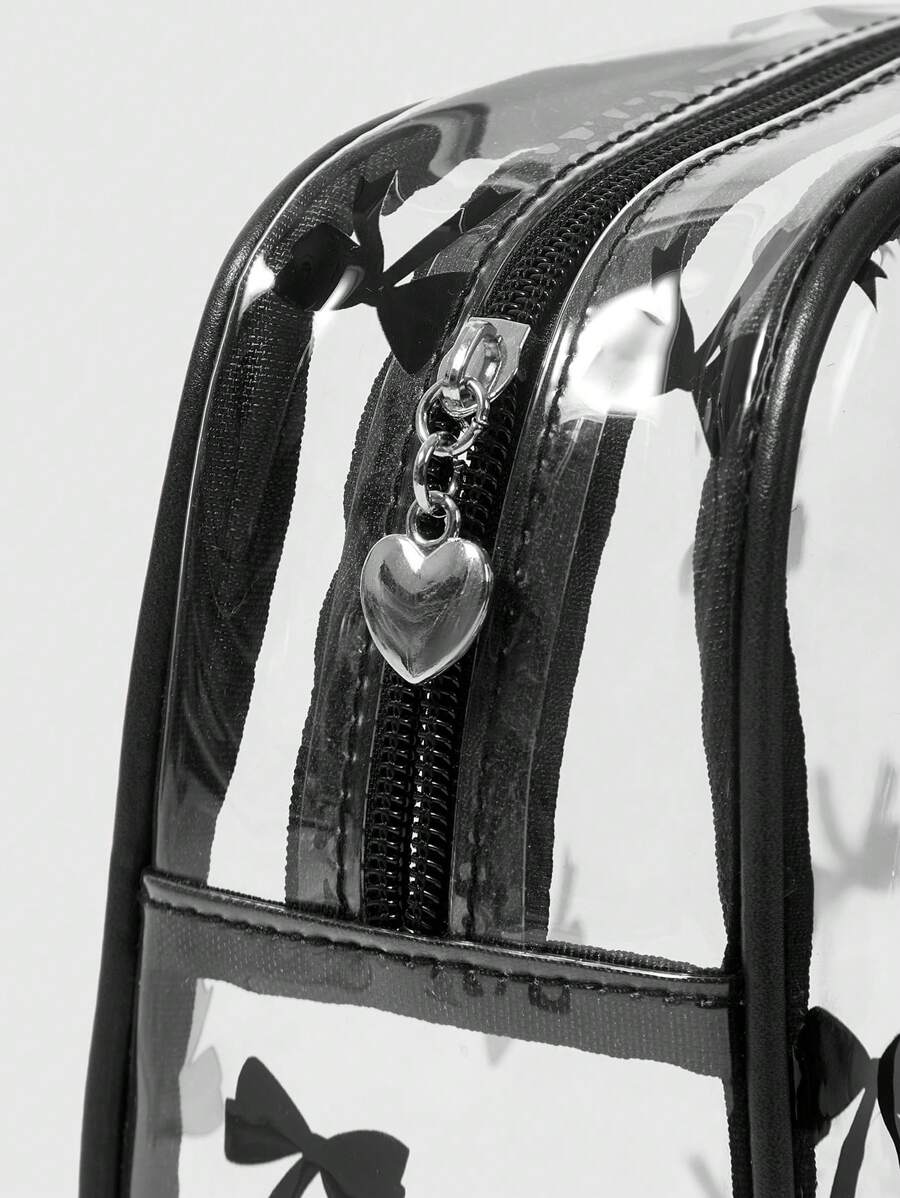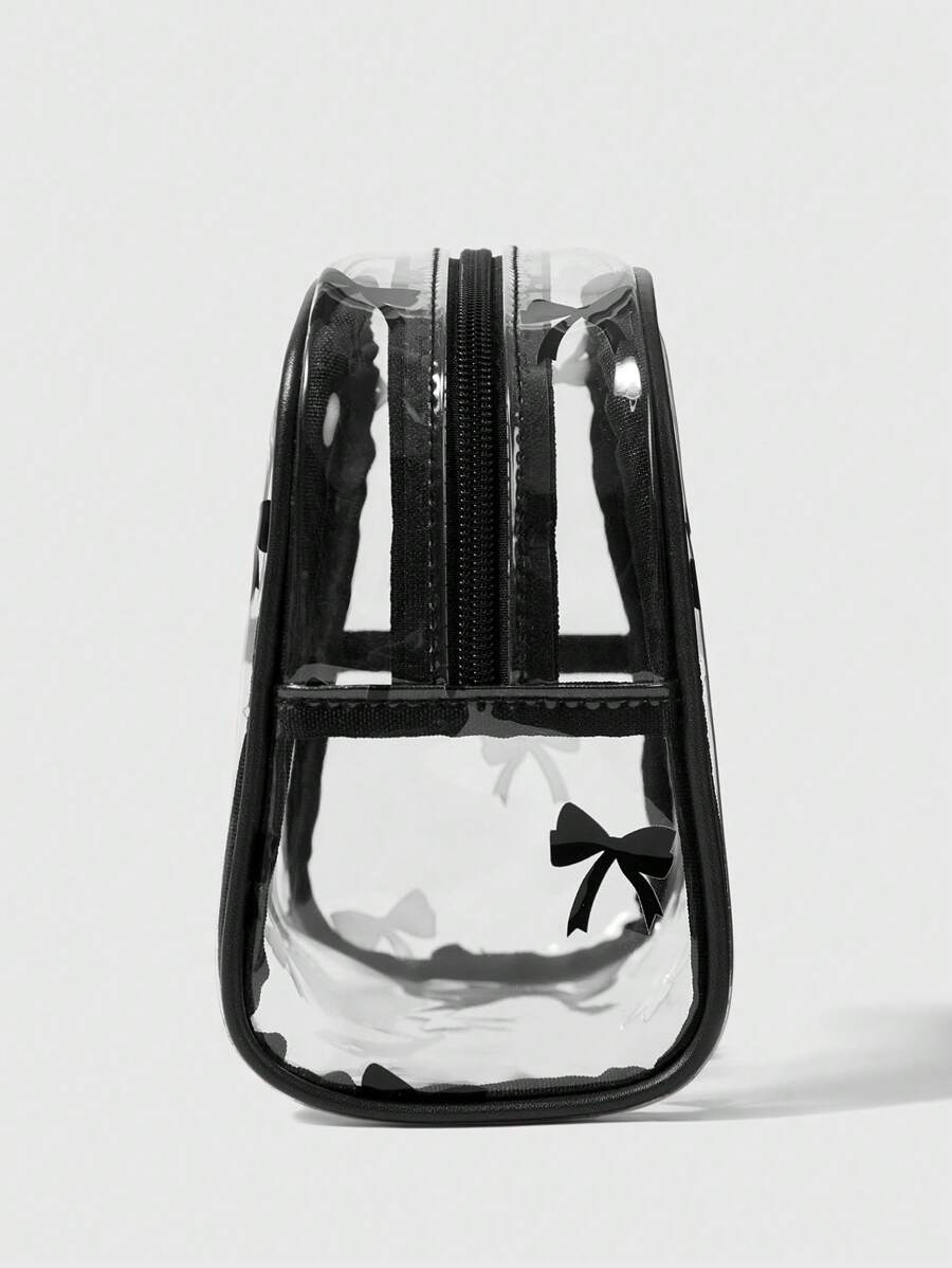 Kawaii Bolsa de maquillaje portátil y linda con estampado de lazo, de moda