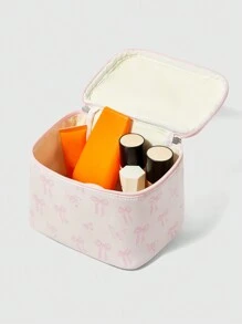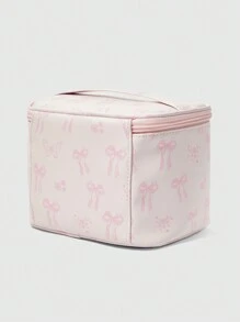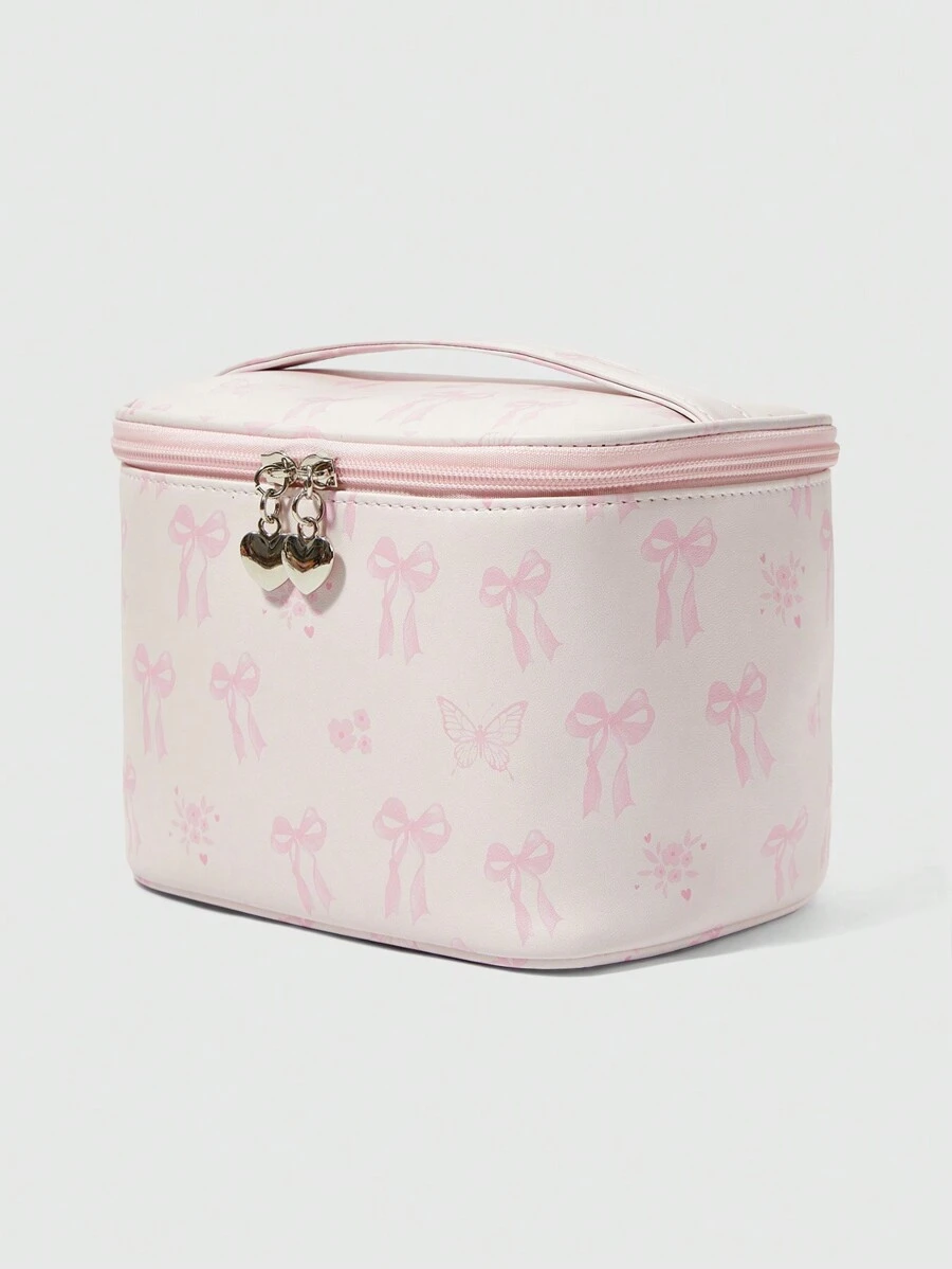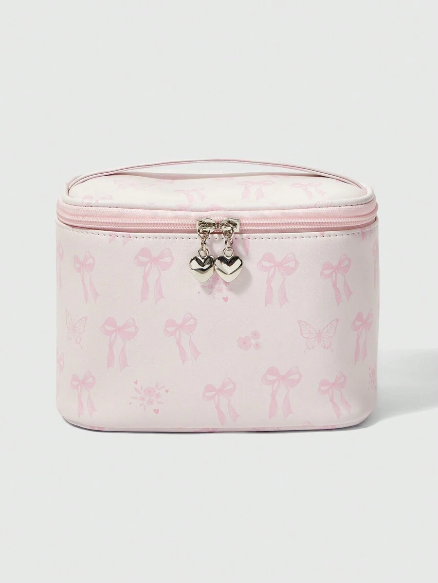 Bolsa organizadora de cosméticos de gran capacidad con estilo de cubo, lazo y estampado de mariposa, de moda Kawaii y portátil