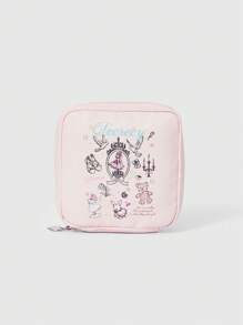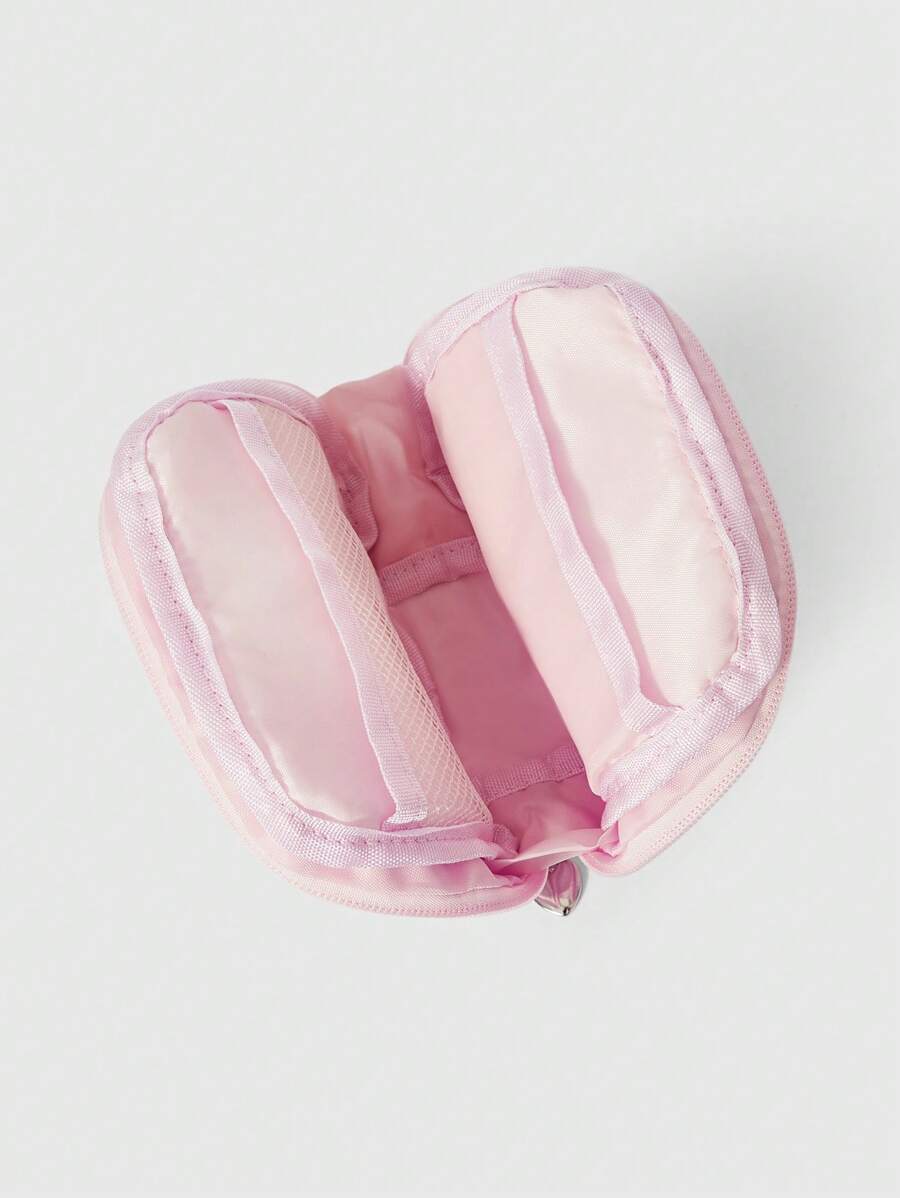 Kawaii Bolsa de maquillaje de gran capacidad portátil y gruesa con decoración de oso con lazo de dibujos animados, bolsa de cosméticos cuadrada pequeña, 1229274