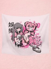 Anime Tapiz con figura de dibujos animados & con estampado de oso