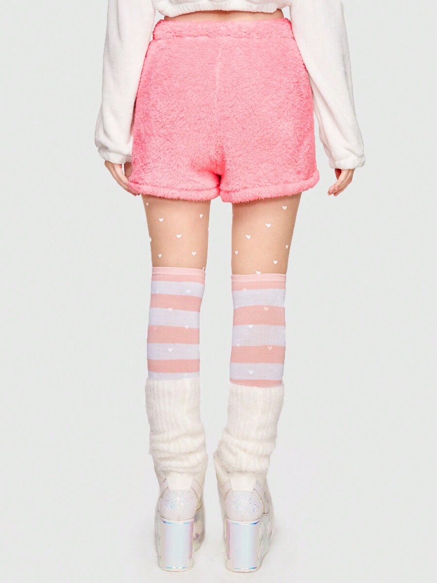 Kawaii Shorts con estampado de dibujos animados de cintura con cordón de franela