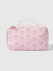 Kawaii Bolsa de maquillaje portátil de gran capacidad con lazo rosa de dibujos animados, 919979
