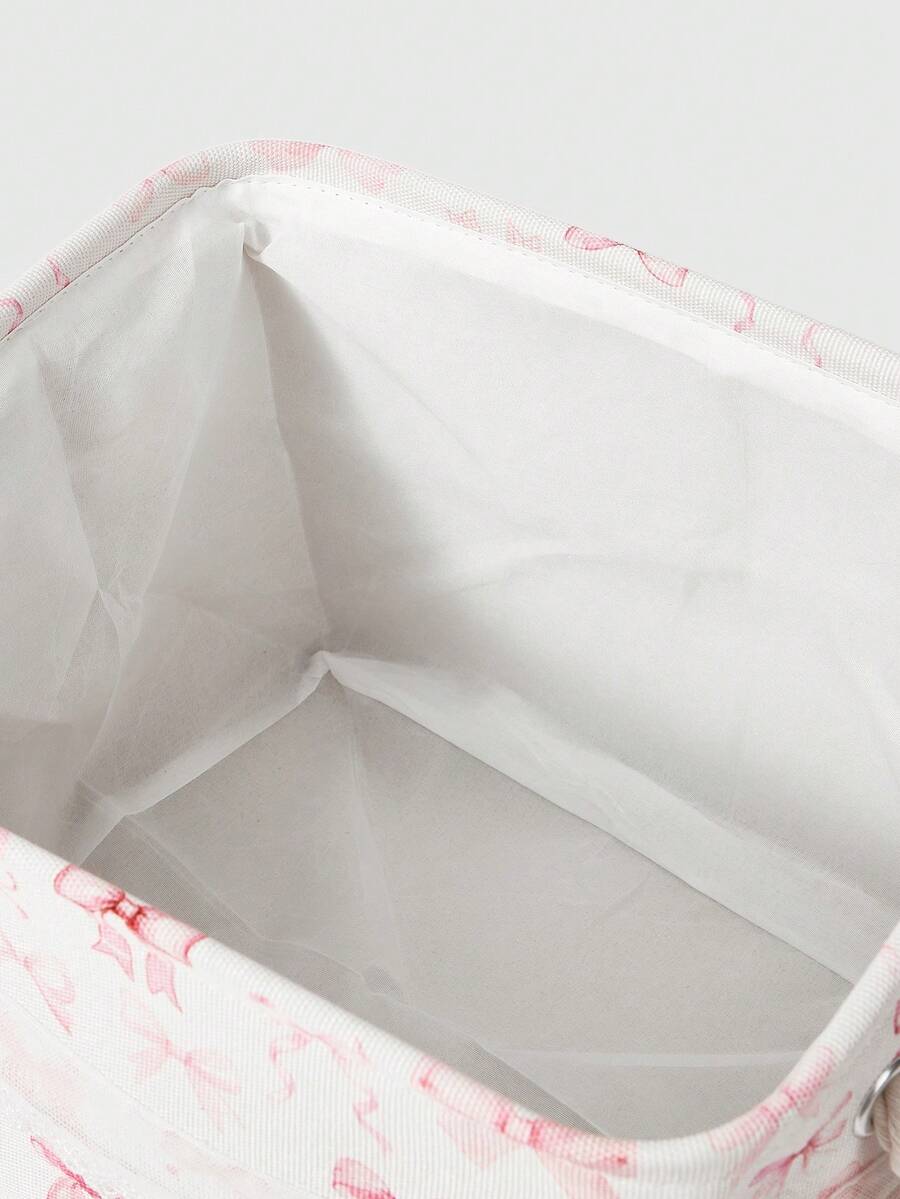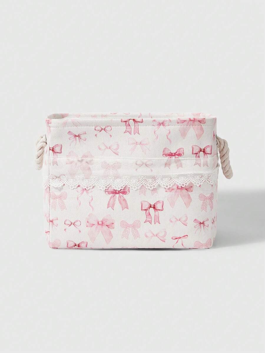 Kawaii Cesta de almacenamiento y lavandería con lazo rosa de dibujos animados reforzada