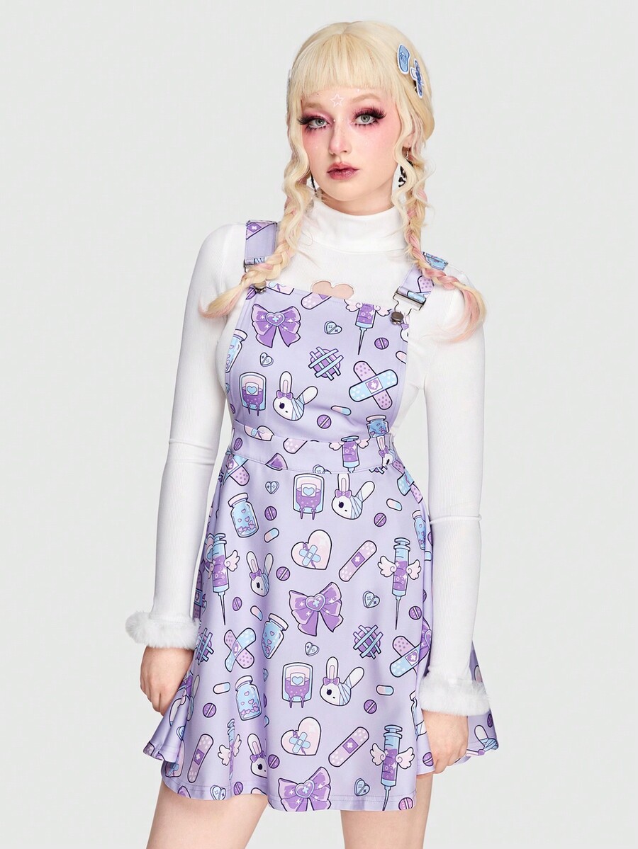 Kawaii Vestido De Peto Con Estampado De Dibujos Animados