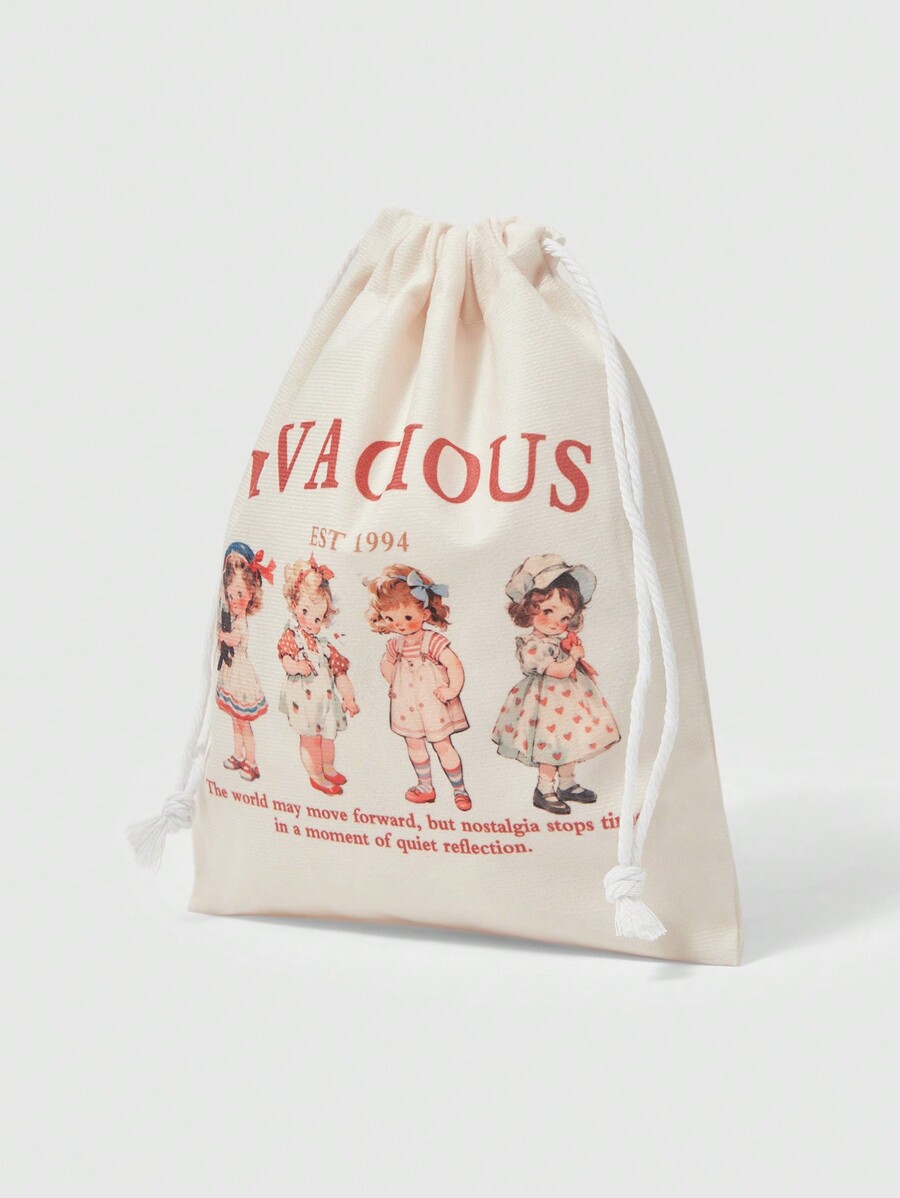 Kawaii Bolsa de cosméticos portátil con cordón y alta capacidad de almacenamiento para niña retro con diseño de caricatura, 442464