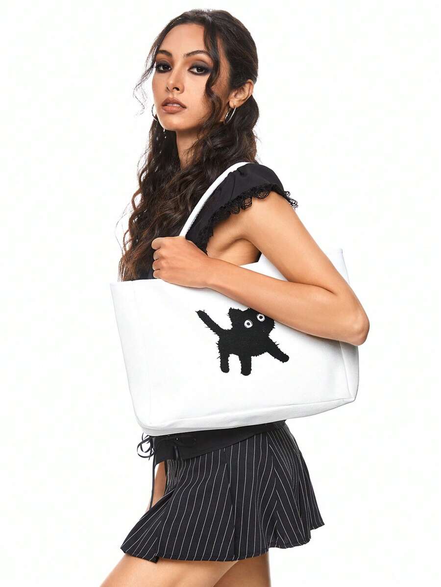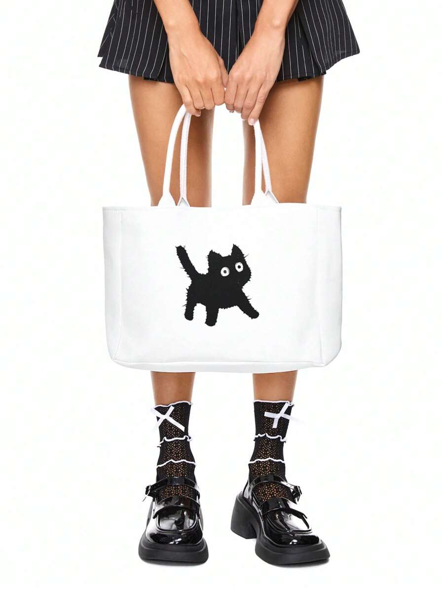 Kawaii Bolsa de hombro para mujer con diseño de gato asustado en caricatura, de moda, duradera y portátil, con gran capacidad (modelo 716096)
