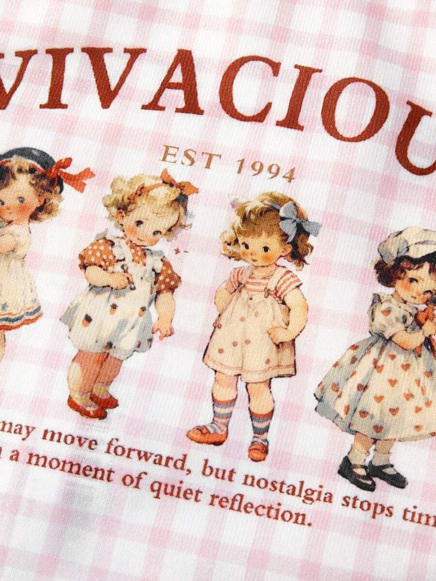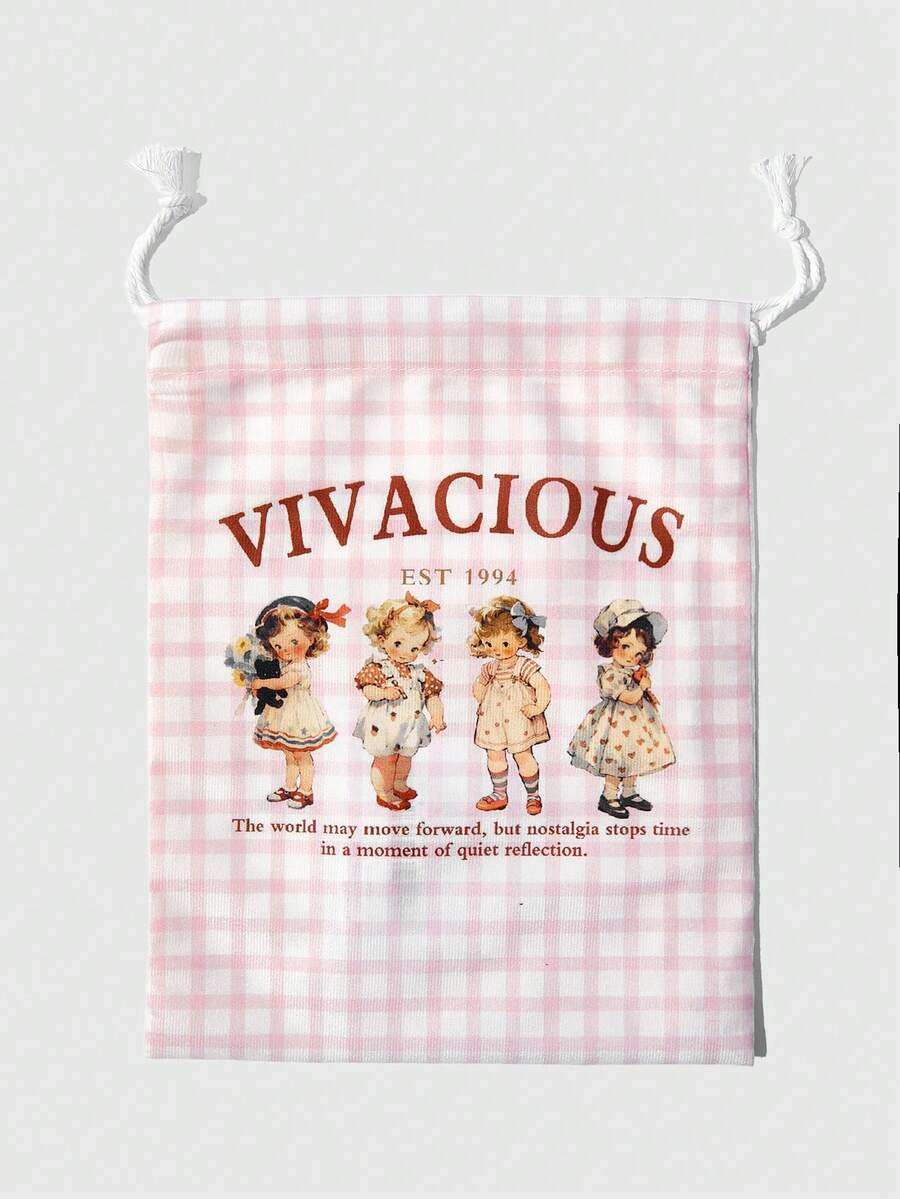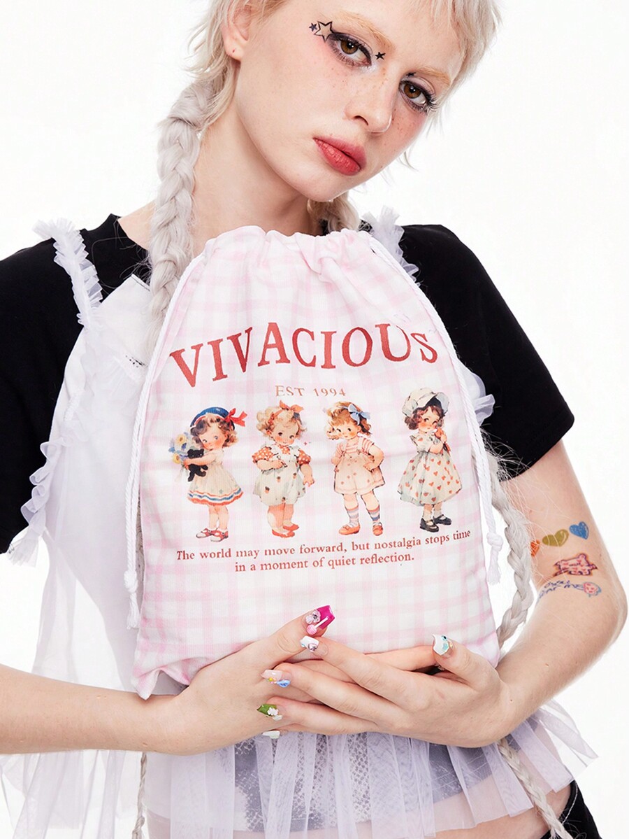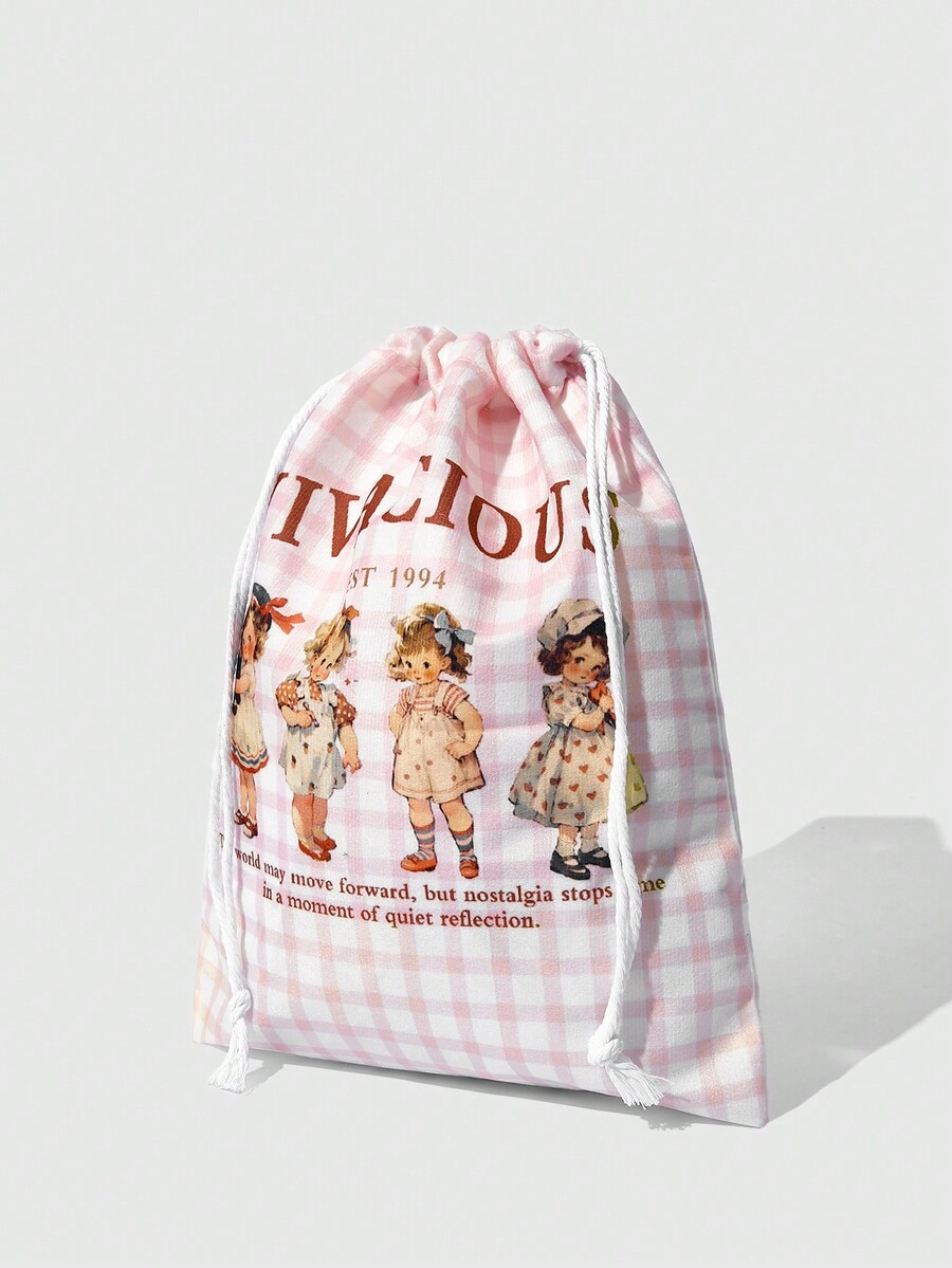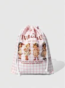 Kawaii Bolsa de cosméticos y monedero con cordón de gran capacidad con estampado de niña vintage de dibujos animados