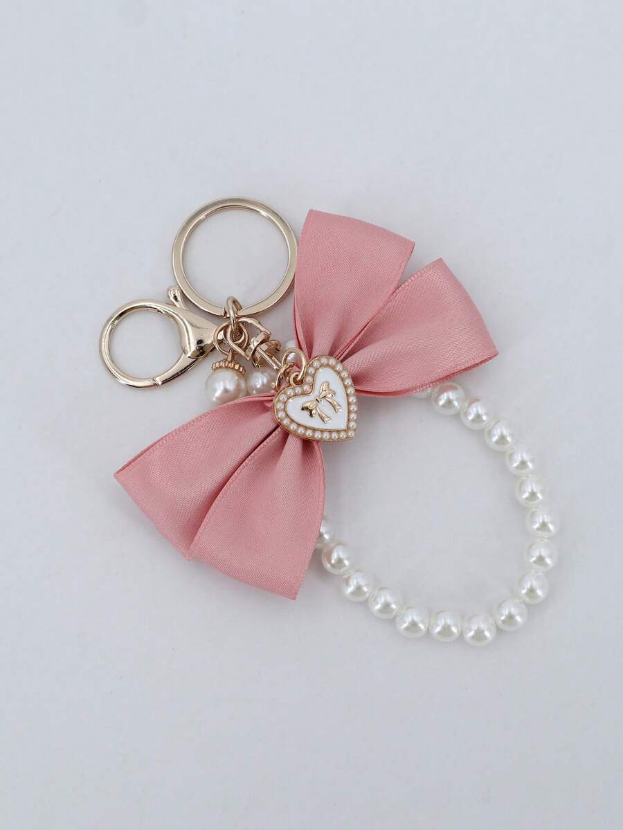 Kawaii Accesorio casual de bolso con lazo rosa y perla, minimalista y de moda para uso diario