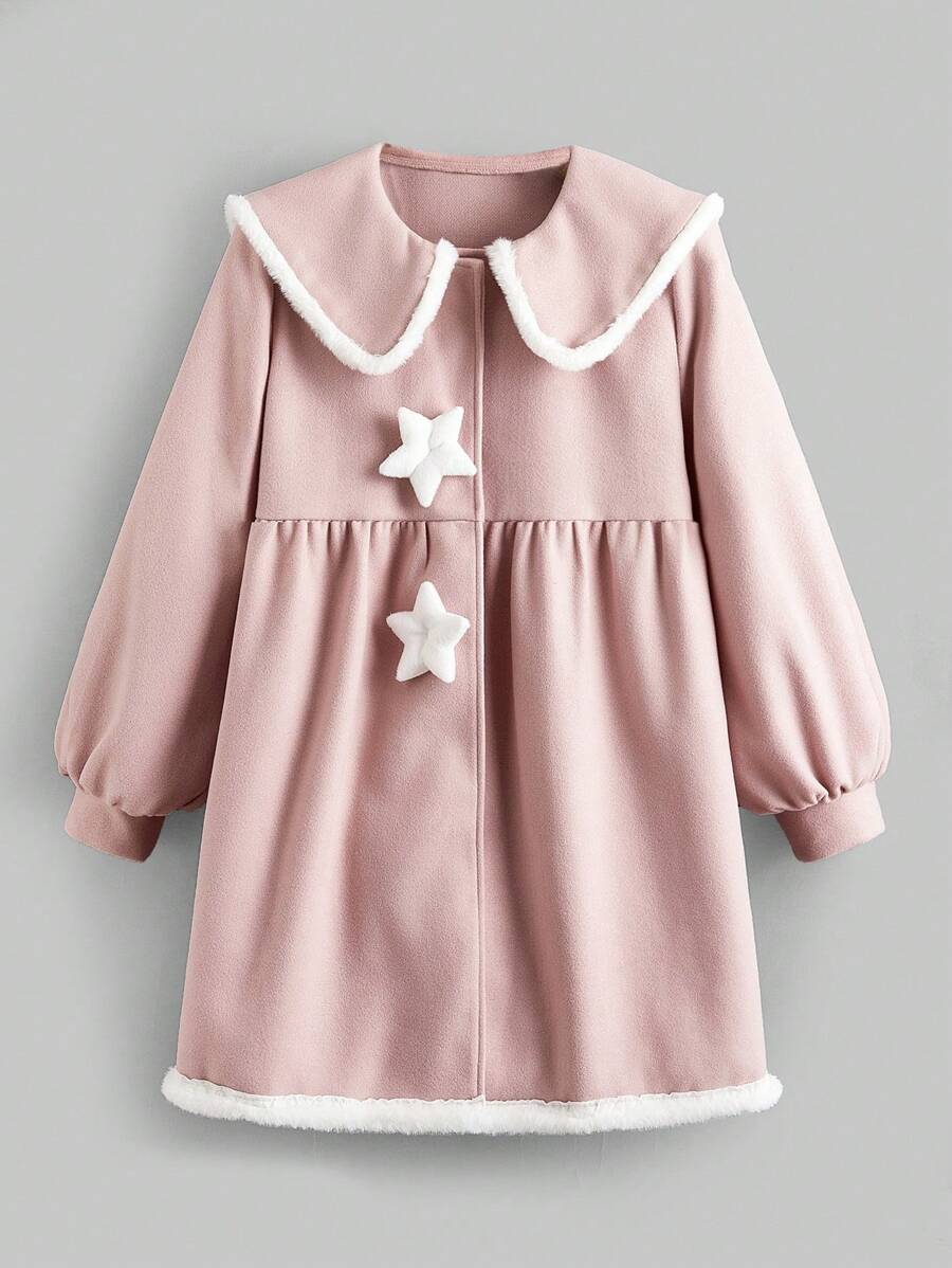 Kawaii Abrigo regular casual de mujer con lindo cuello de campana tipo Peter Pan y decoraciones con flecos