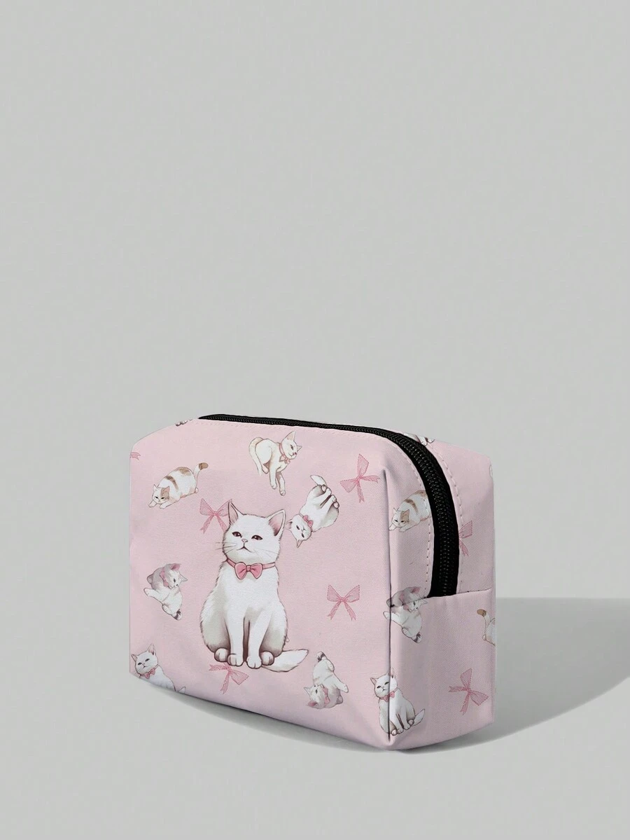 Kawaii Bolso De Maquillaje Con Diseño De Gato Y Moño Decorativo