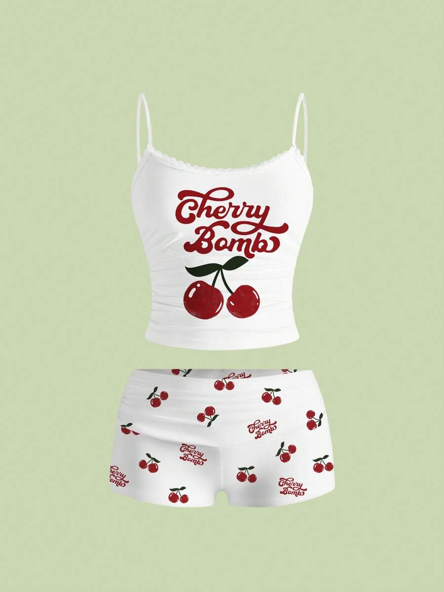 Kawaii Conjunto de 2 piezas de camiseta y pantalones cortos con parches, estilo lindo y juguetón, elegante y sexy para mujeres