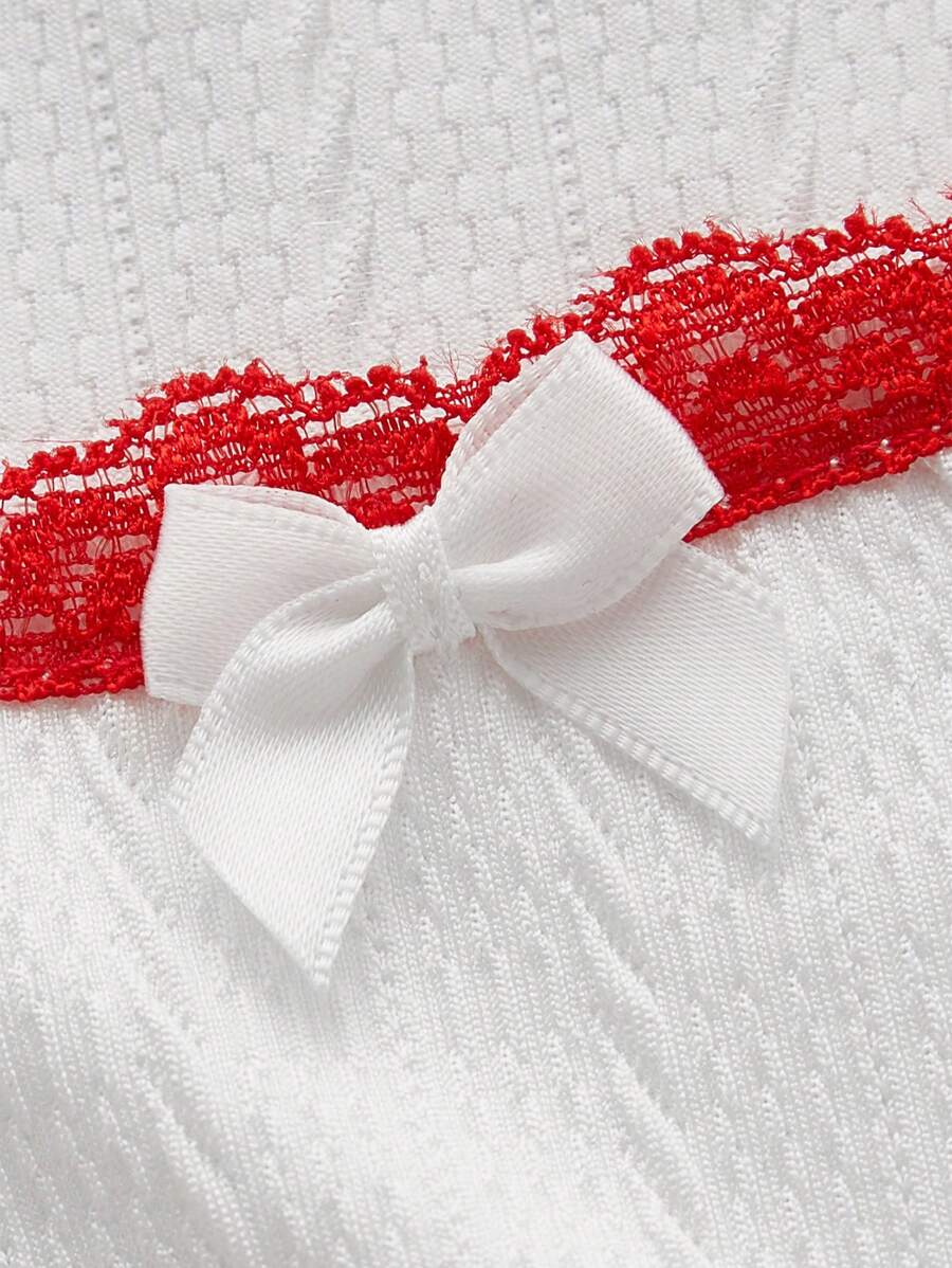 Kawaii Camiseta con estampado de cereza y letras, con borde de encaje, para la escuela