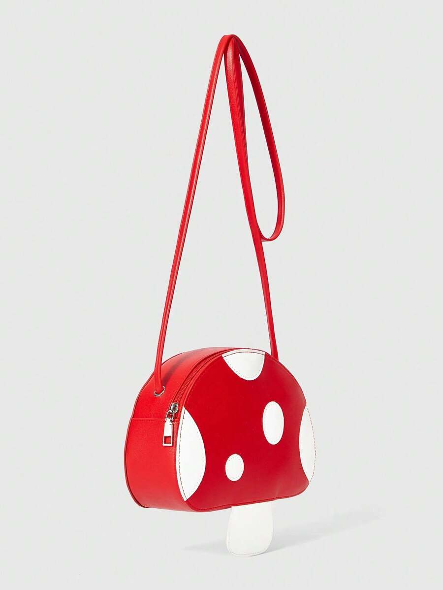 Kawaii Bolso bandolera de hombro con estampado de hongo en colores contrastantes, minimalista y de moda