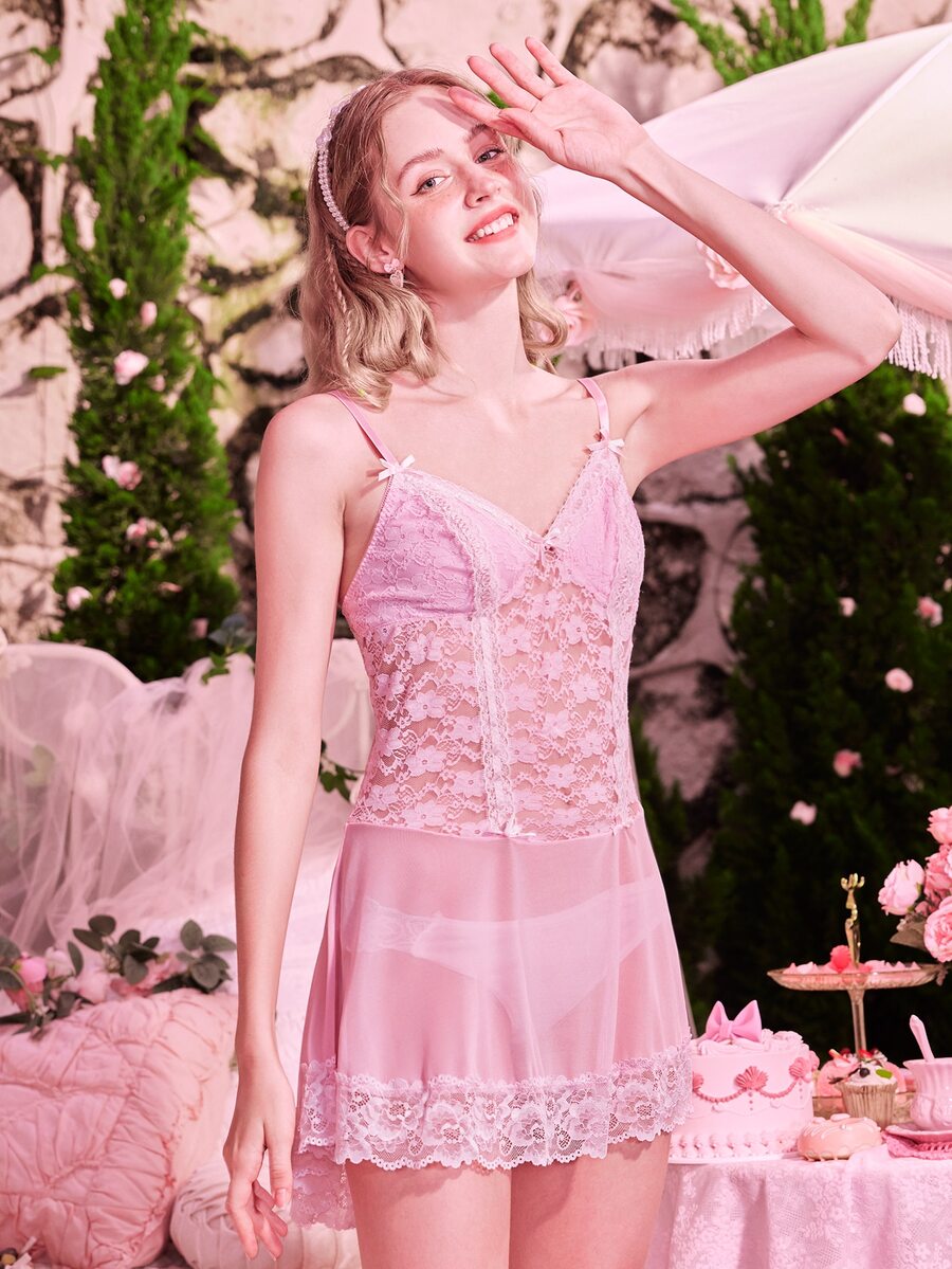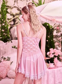 Kawaii Tanga con encaje en contraste con diseño de lazo Babydoll &