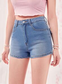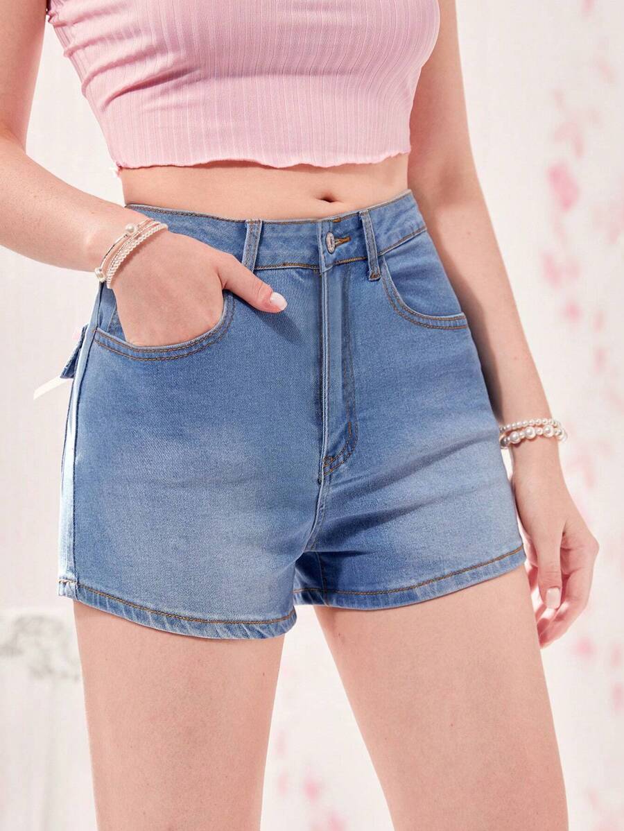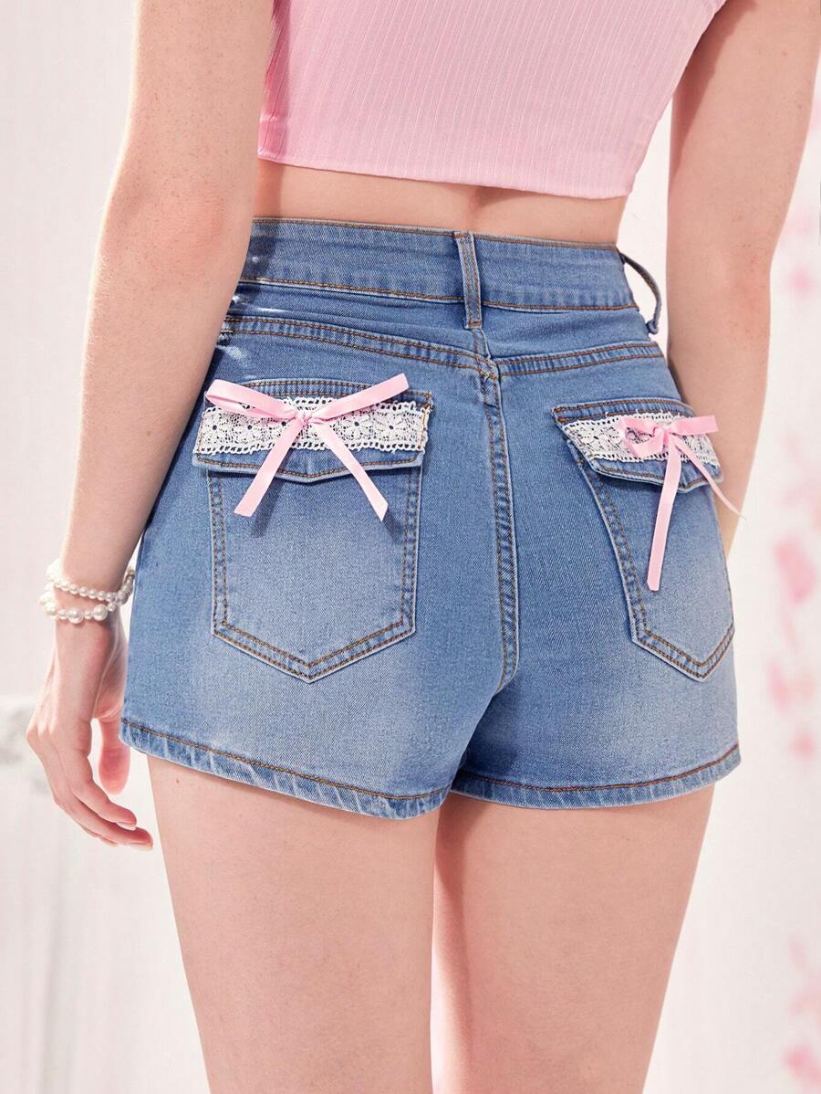 Kawaii Shorts en mezclilla con encaje en contraste con diseño de lazo