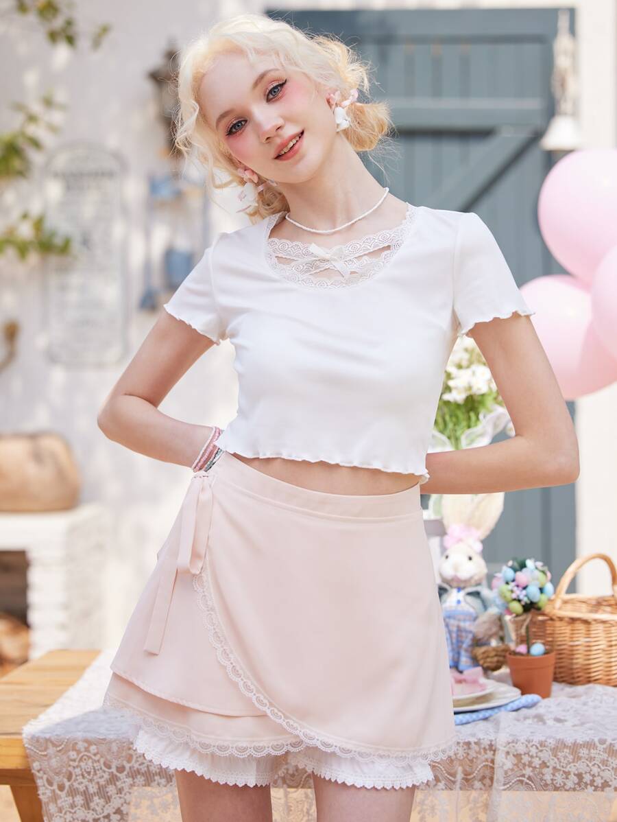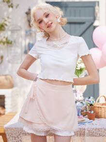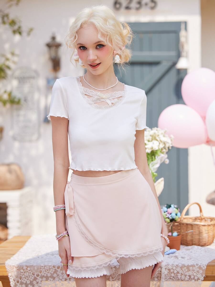 Kawaii Camisetas de Mujer Encaje en contraste Acaracolado Liso Casual