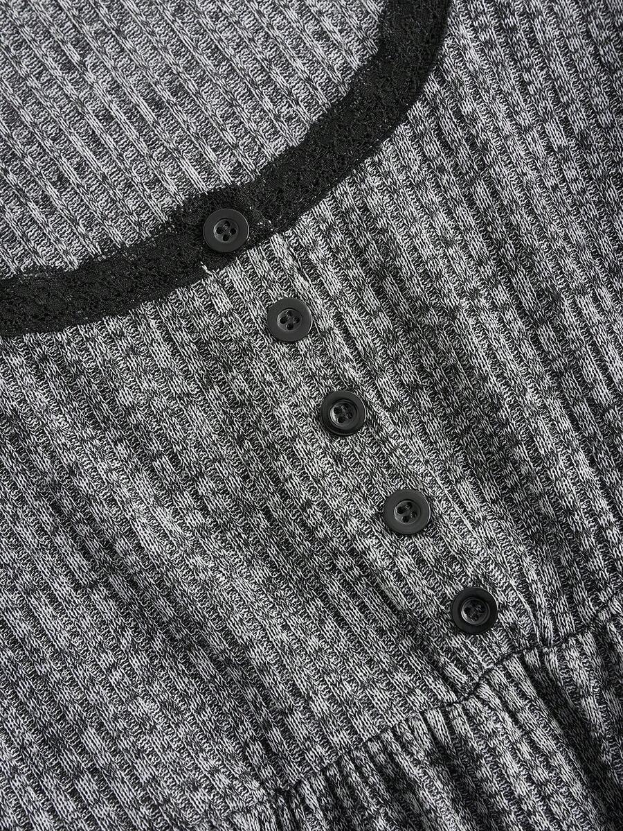 Kawaii Camiseta con encaje en contraste con botón delantero peplum