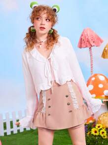 Kawaii Skort con encaje en contraste bajo con fruncido