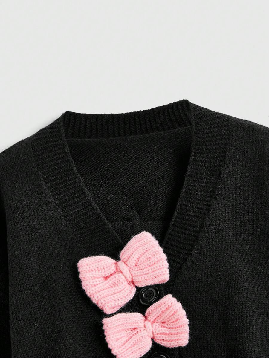 Kawaii Cárdigan de mujer con decoración de moño 3D lindo