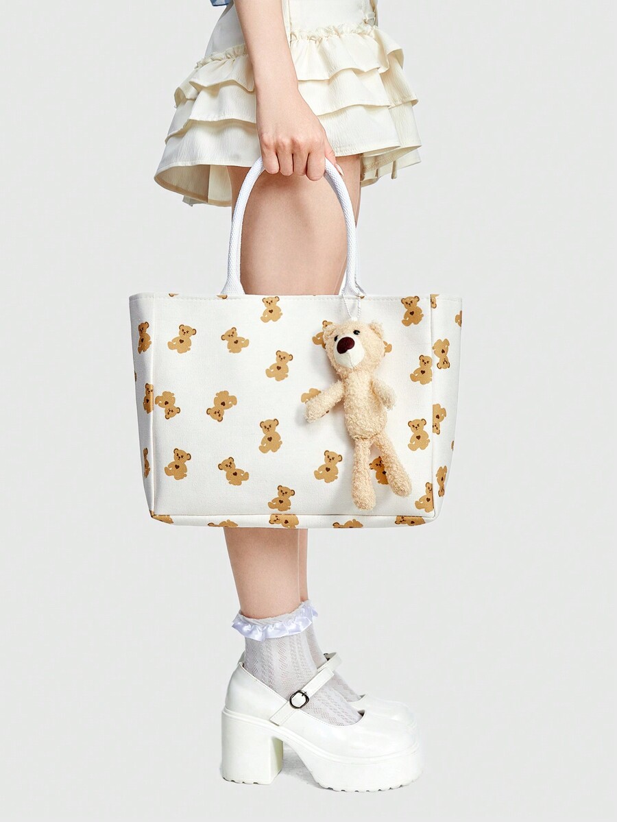 Kawaii Bolso de hombro/bolso grande, portátil, duradero, con capacidad para mujer. Diseño de oso de dibujos animados lindo y de moda. 140097