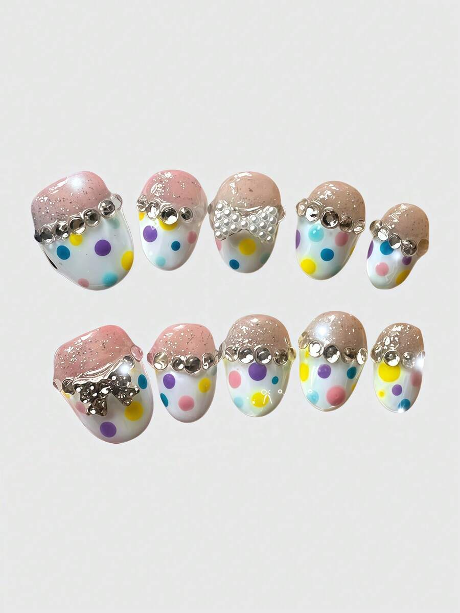 Kawaii Puntas de uñas postizas hechas a mano con alas de metal en forma de corazón romántico con encaje, nota musical y serie rosa, estilo de bailarina, adecuadas para salidas diarias y citas. Producción masiva, diseño enérgico para niñas.