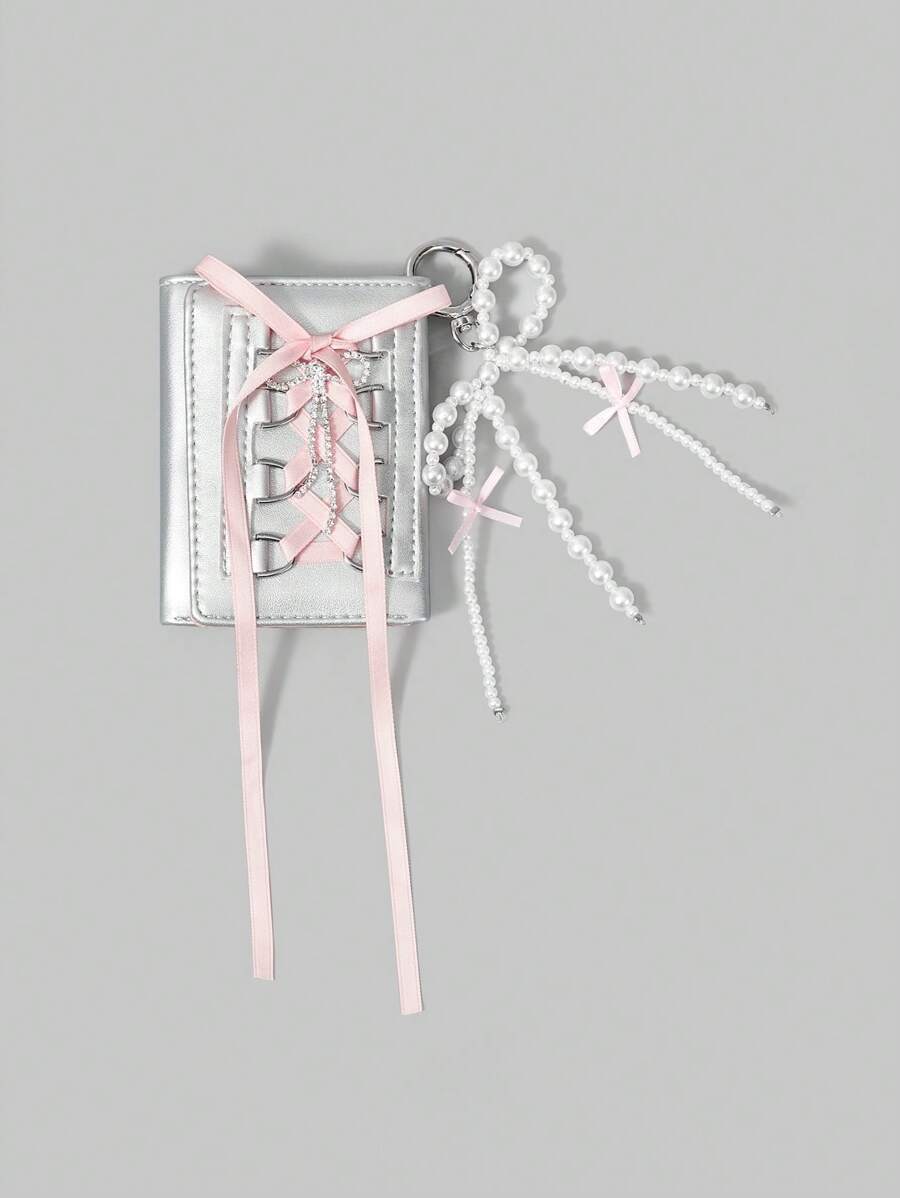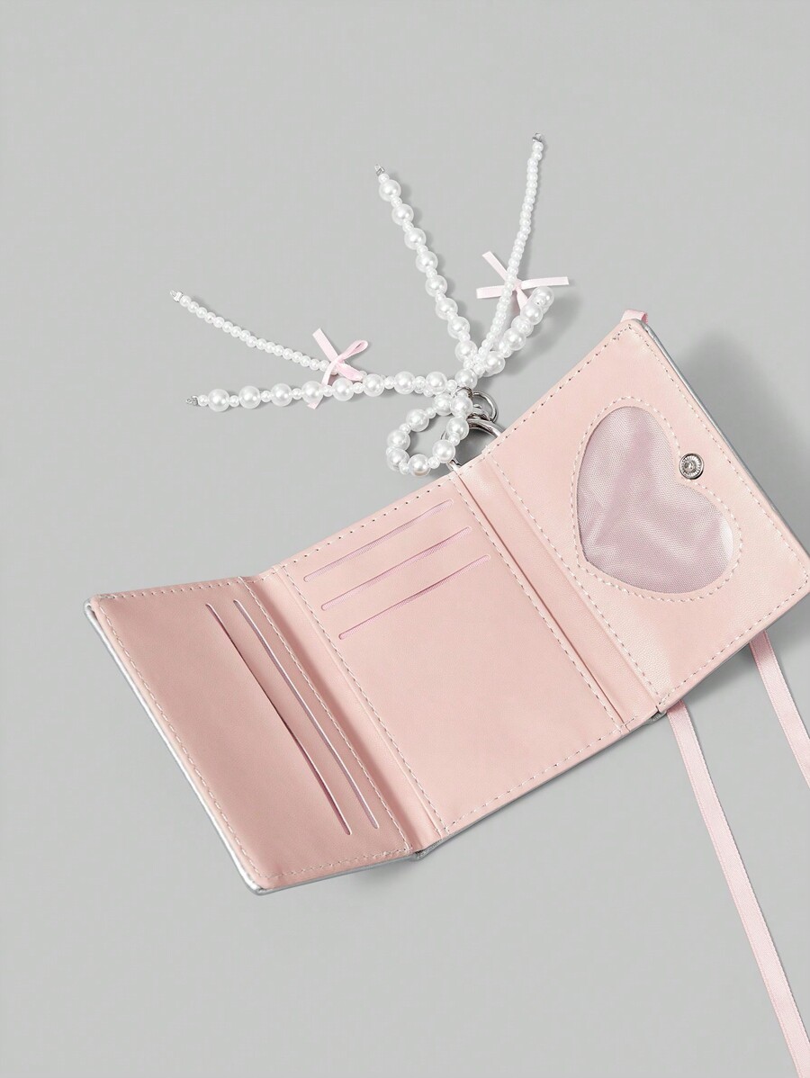 Kawaii Cartera corta con decoración de lazo rosa, estilo escolar/universitario para mujer, cartera mini, monedero, cartera pequeña, cartera linda