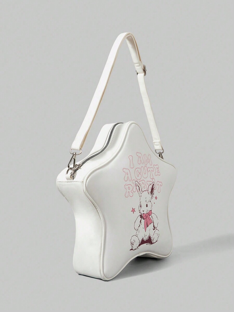 Kawaii Bolso de hombro, bandolera y de doble hombro con estampado de estrella de cinco puntas, diseño lindo de conejo