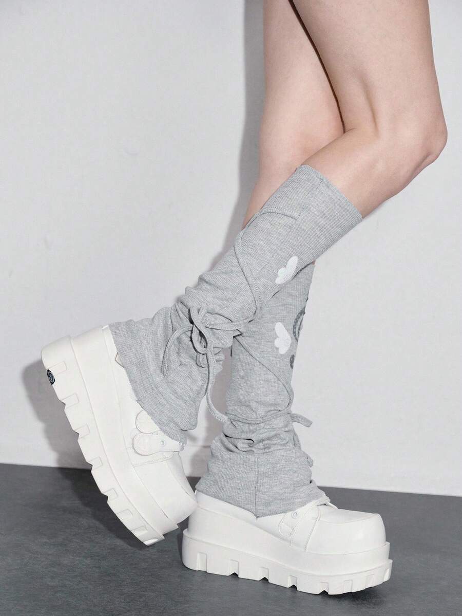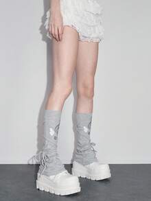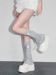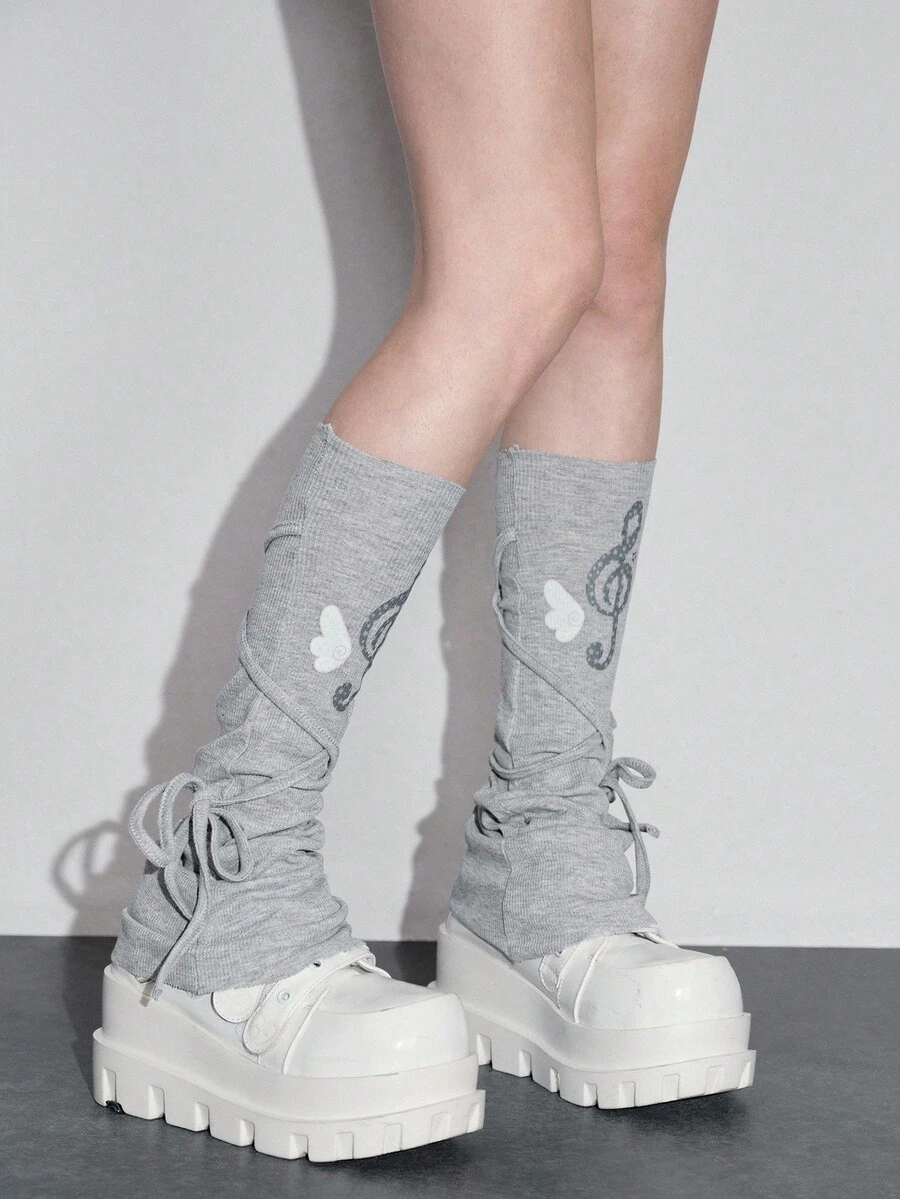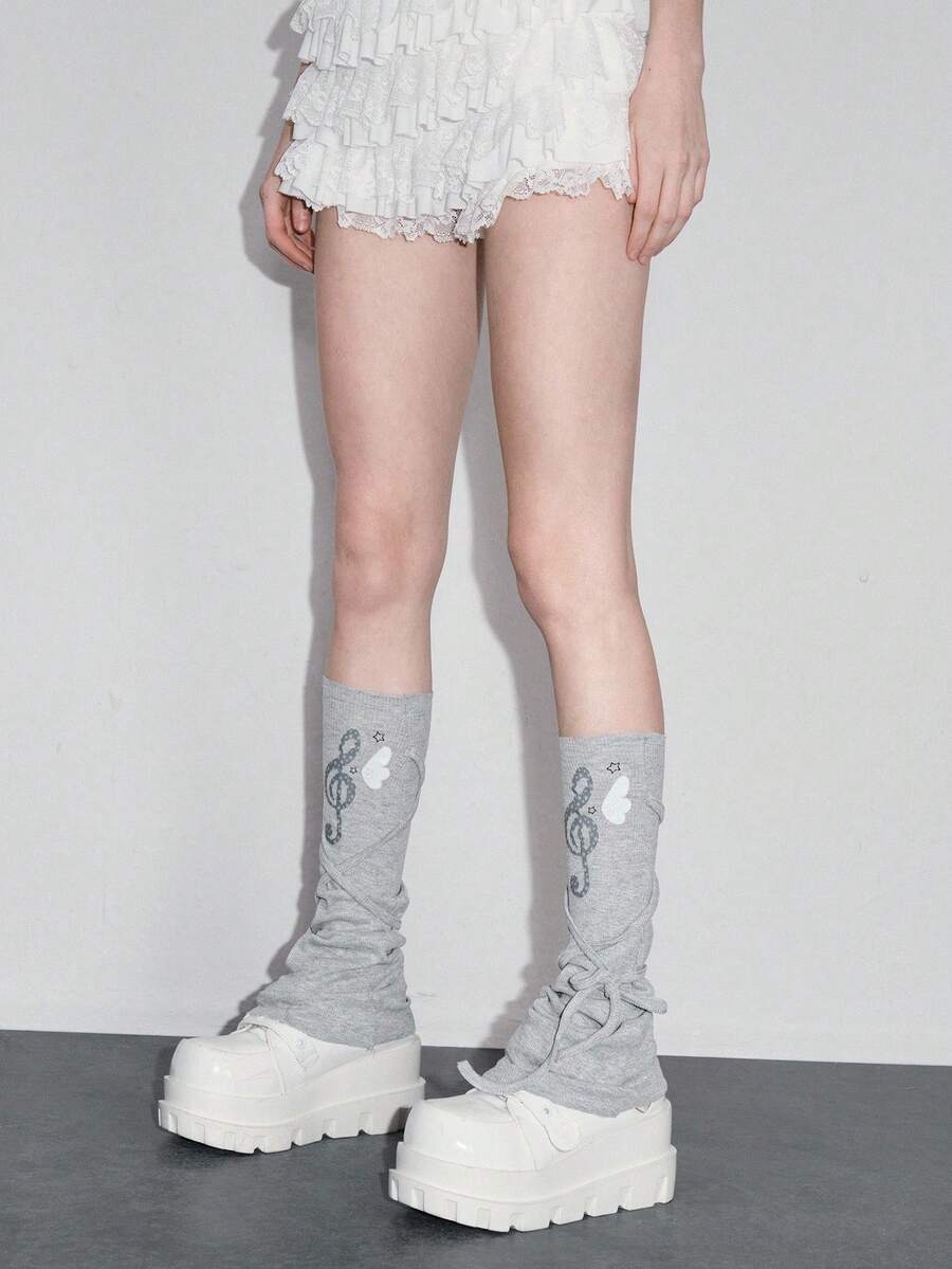 Kawaii Calentadores de piernas de unicolor con lazo, nota musical y alas de estilo Y2K lindos para mujeres, adecuados para decoración de atuendos, cosplay de personajes de anime, accesorios JK