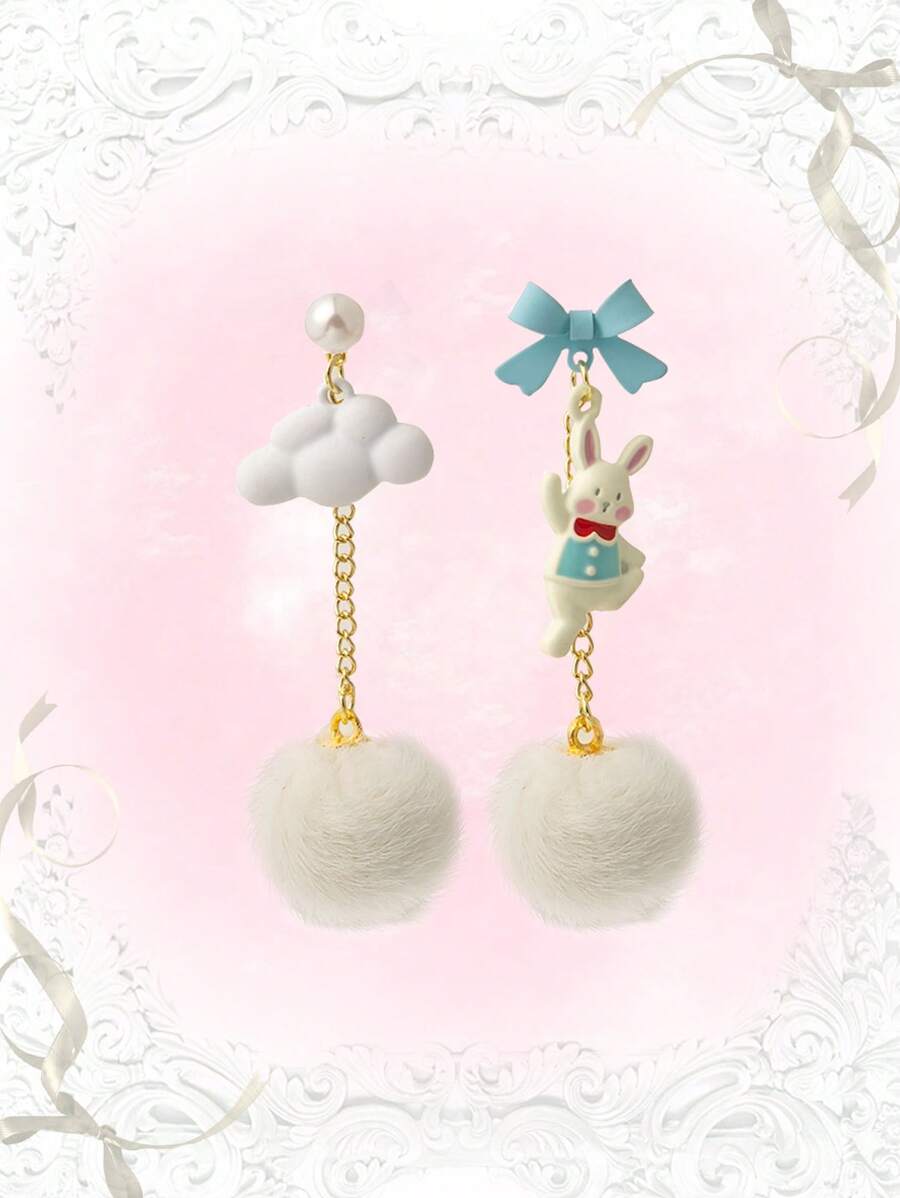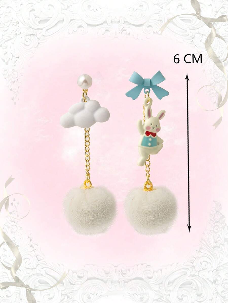 Kawaii 1 par Pendientes largos dulce aleación de zinc conejo & con diseño de nube de desemparejar para mujeres para decoración diaria