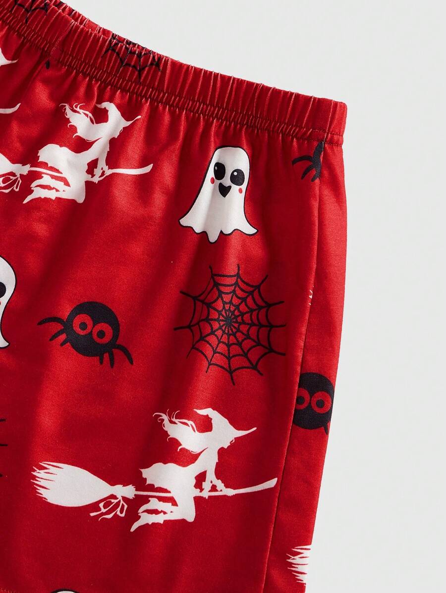 Kawaii Conjunto de pijama con camiseta de tirantes y pantalones cortos con estampado de fantasma, bruja y telaraña de Halloween oscuro