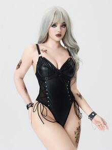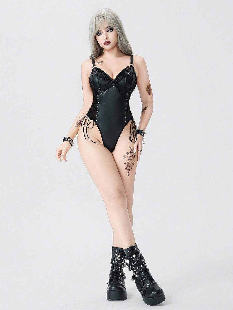 Kawaii Body sexy con accesorios de cruz con cordones de PU estilo punk oscuro