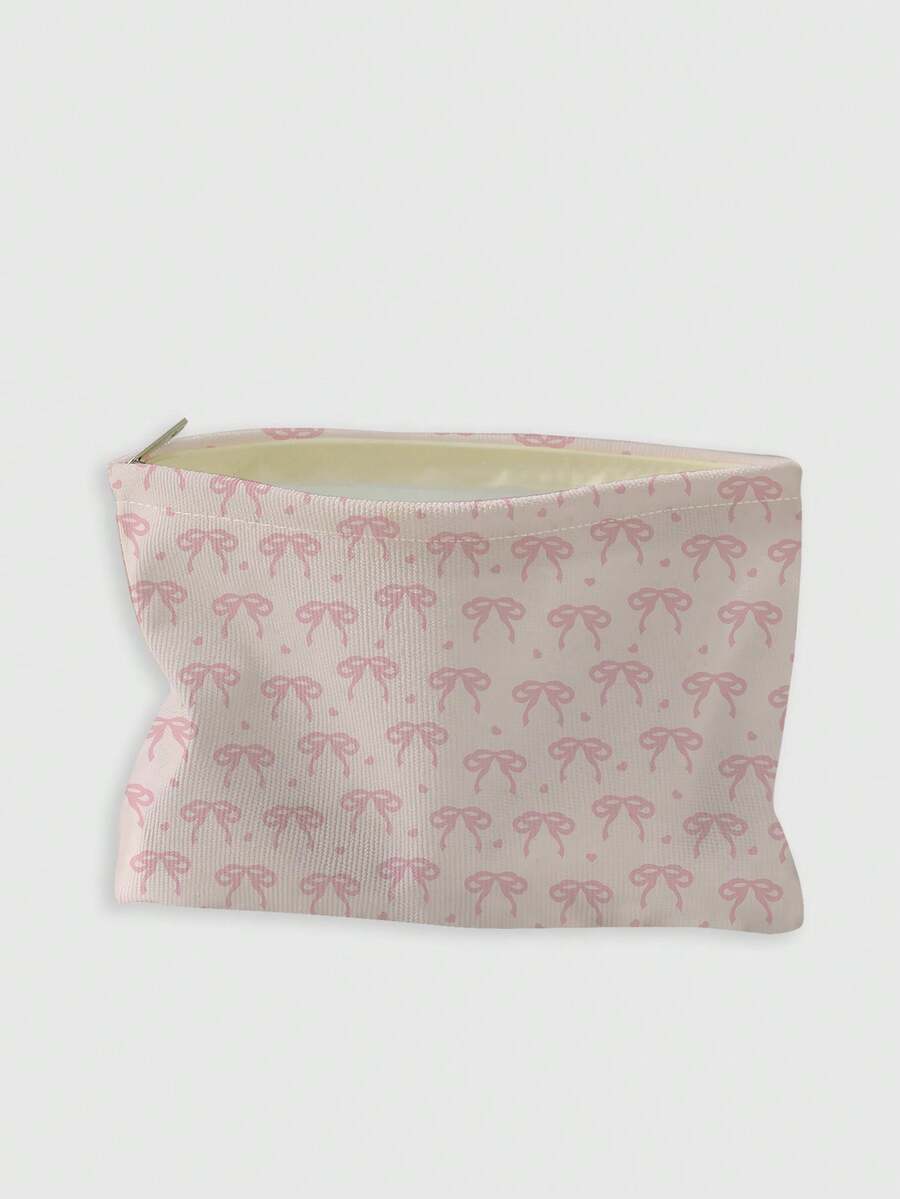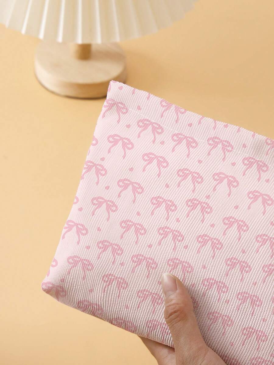 Kawaii Bolsa de cosméticos de pana con patrón de lazo y corazón impreso a doble cara