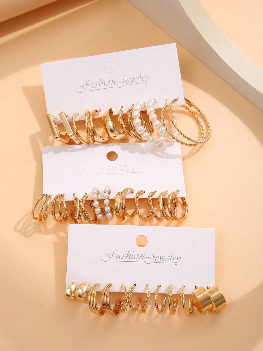 Kawaii 36 Piezas Pendientes De Perlas Falsas De Diseño Geométrico Simple Para Mujeres, Regalo Para Viajes Y Citas