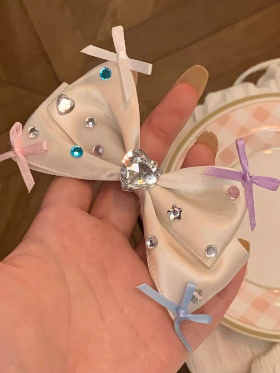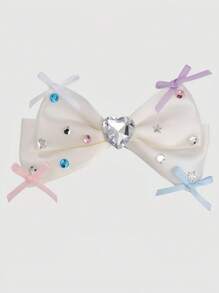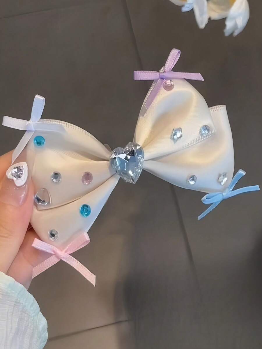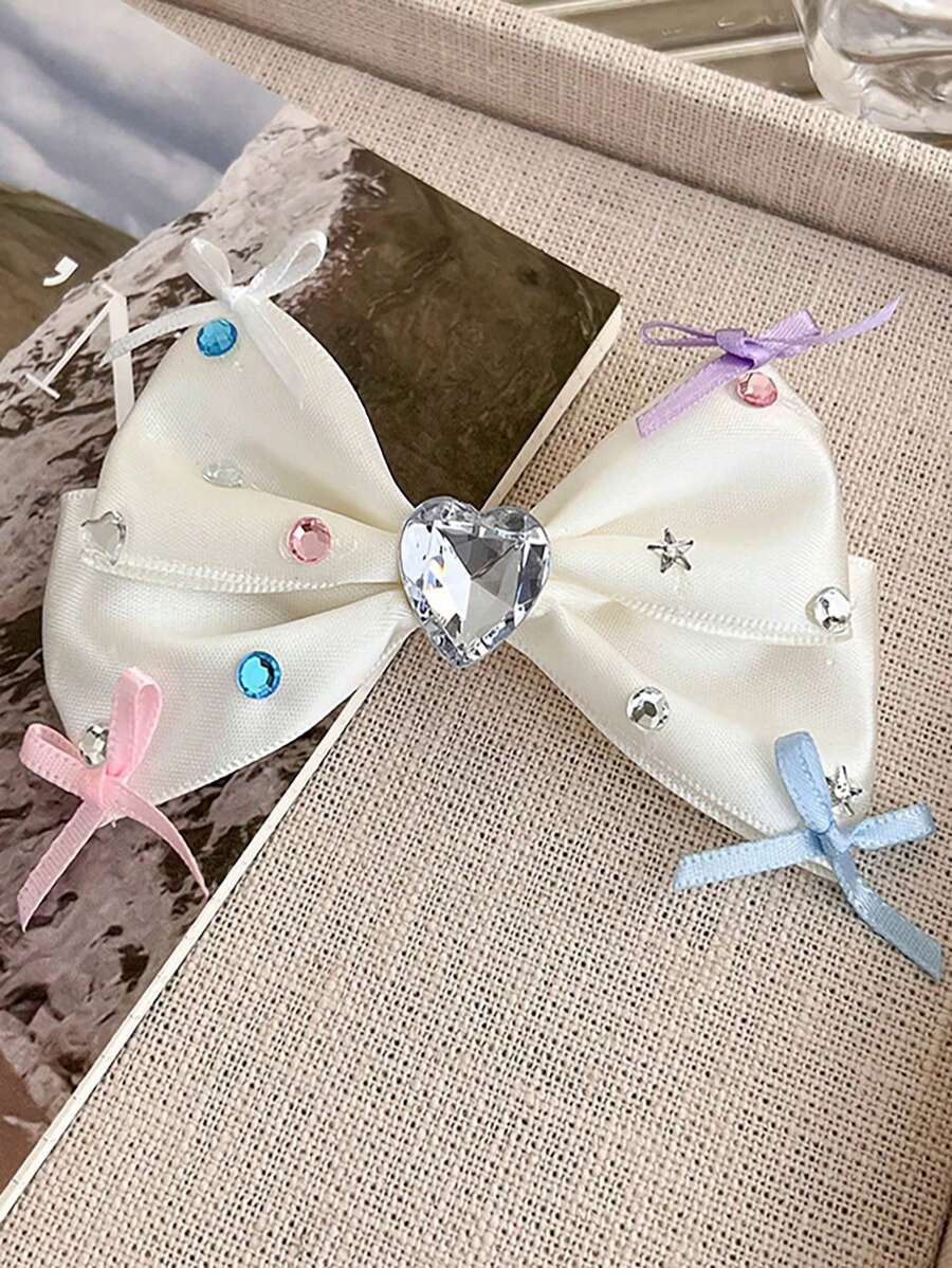 Kawaii Elegante clip de pelo con lazo de tela en forma de corazón, con rinostonte, clip simple de flecos, pasador de princesa, clip de pelo versátil