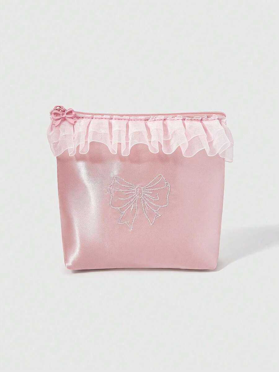 Kawaii Caja de pañuelos con borde floral bordado, bolsa de maquillaje, organizador de toallas sanitarias de viaje, monedero de regalo