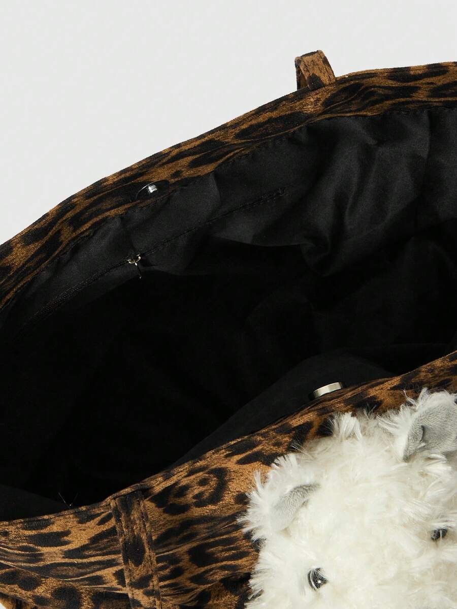 Kawaii Bolso de tote de gran capacidad con estampado de leopardo y peluche para mujeres
