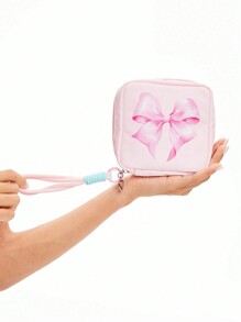 Kawaii Bolso cosmético portátil de gran capacidad con lazo de fantasía acolchado, bolso de maquillaje de moda