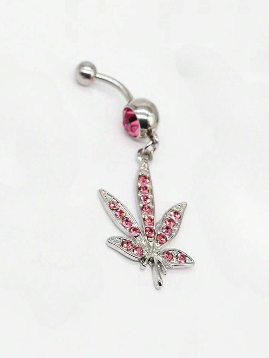 Kawaii Piercing de ombligo personalizado de moda con rhinestones en forma de hoja de arce