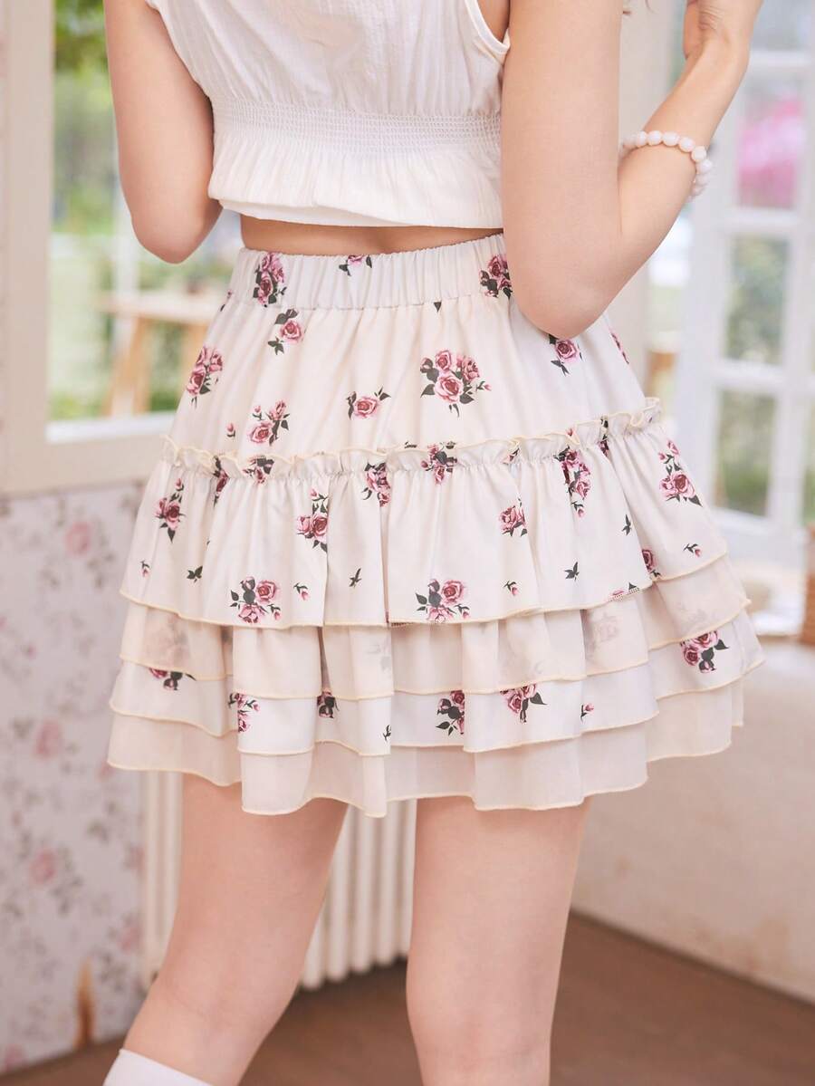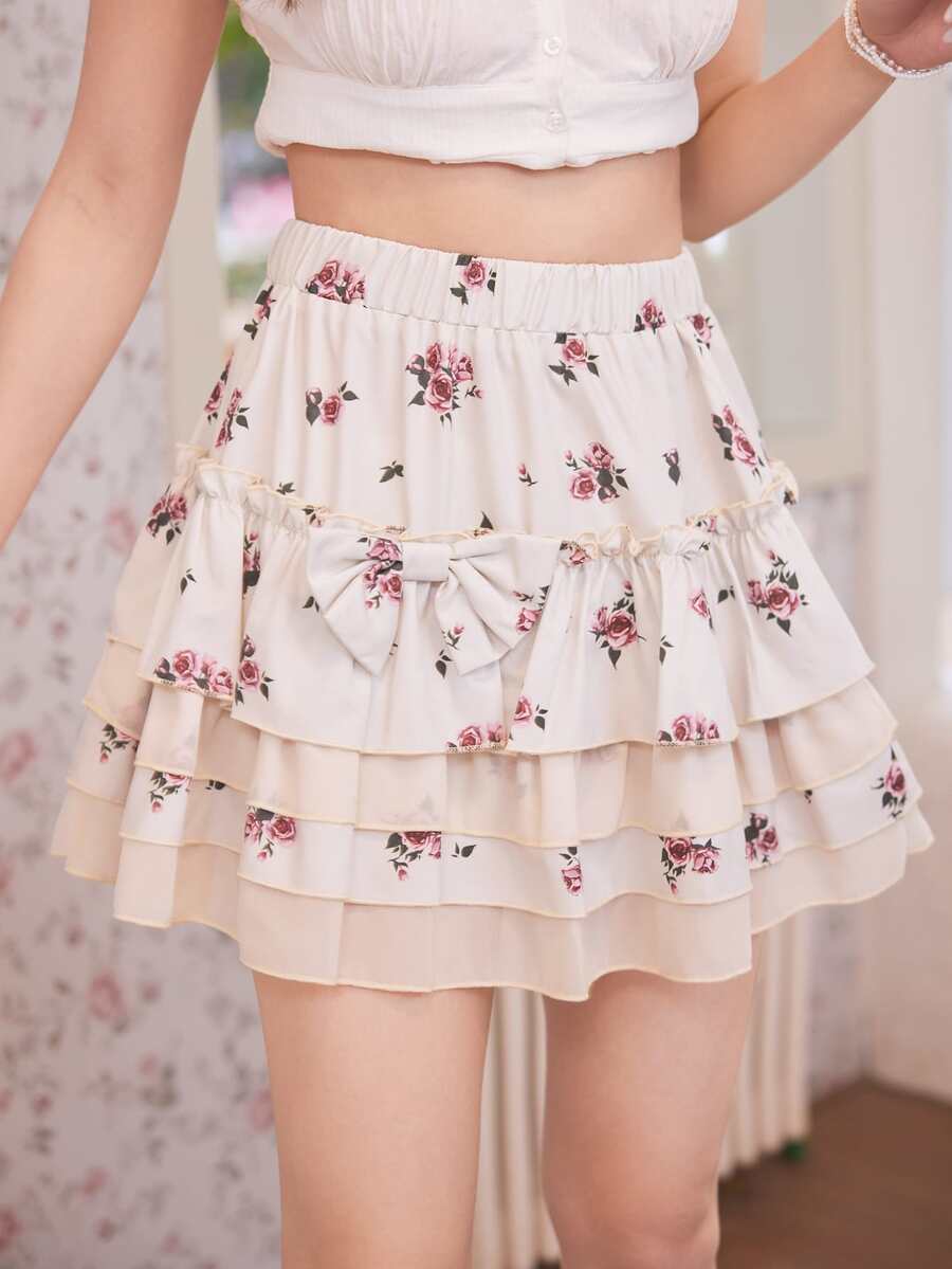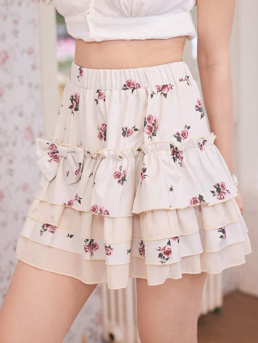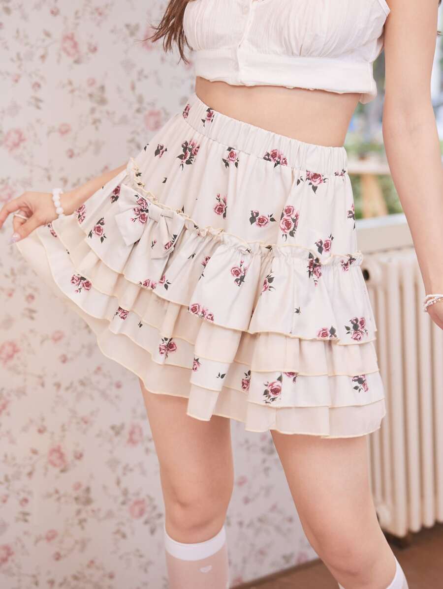 Kawaii Faldas de Mujer Lazo Volante fruncido Capas relajadas Floral Bohemio