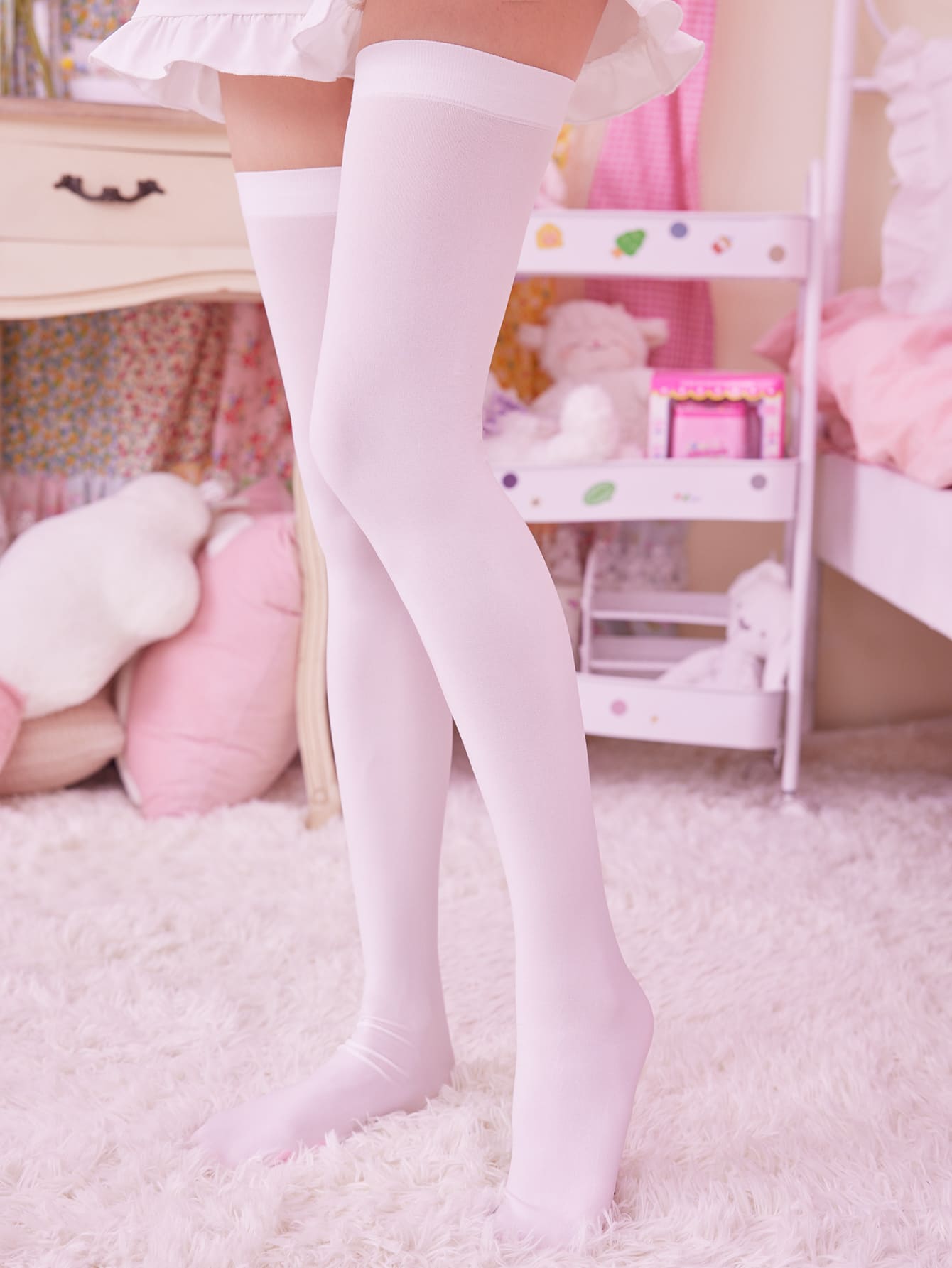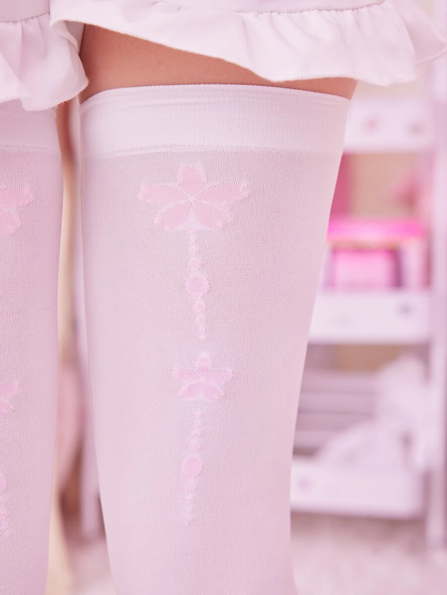 Kawaii Calcetines sobre rodilla con estampado floral