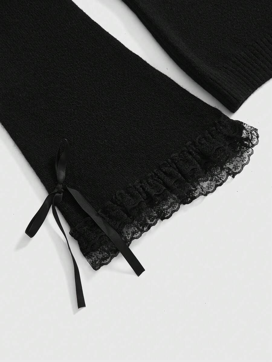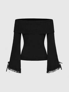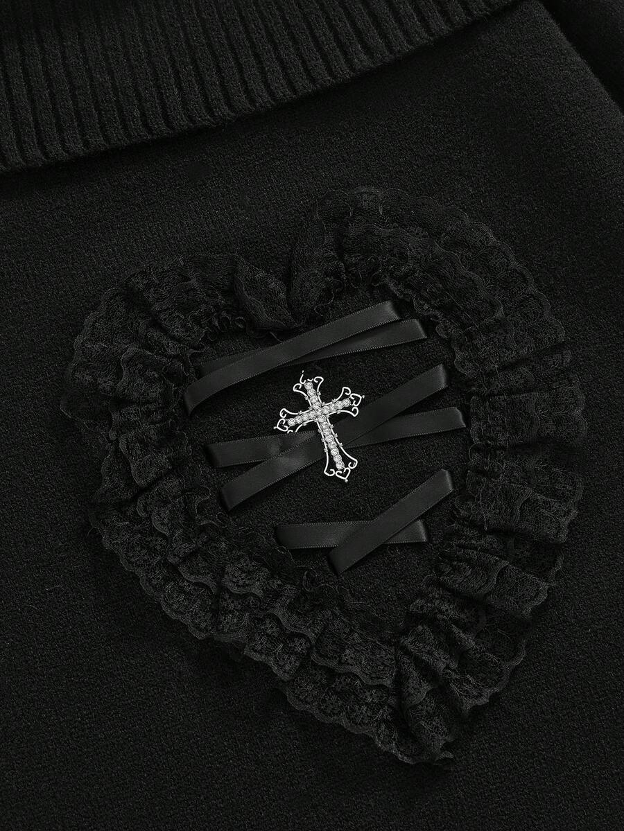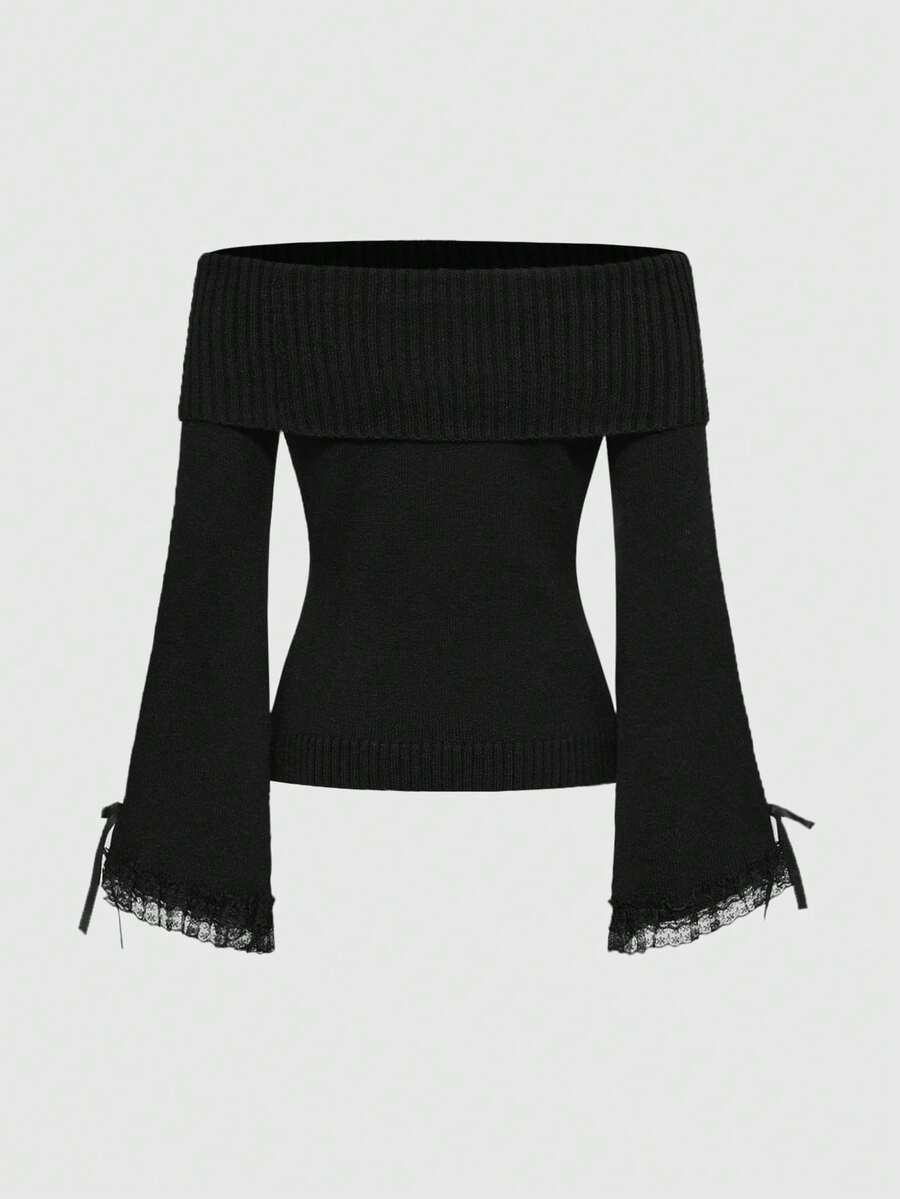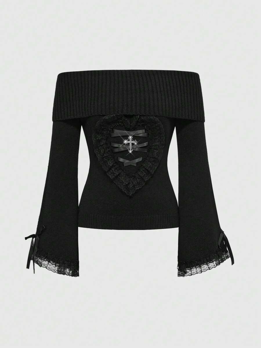Kawaii Suéter de mujer de estilo gótico oscuro con hombros descubiertos y mangas acampanadas, con estilo punk lindo
