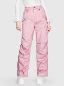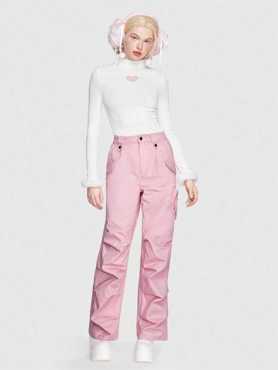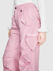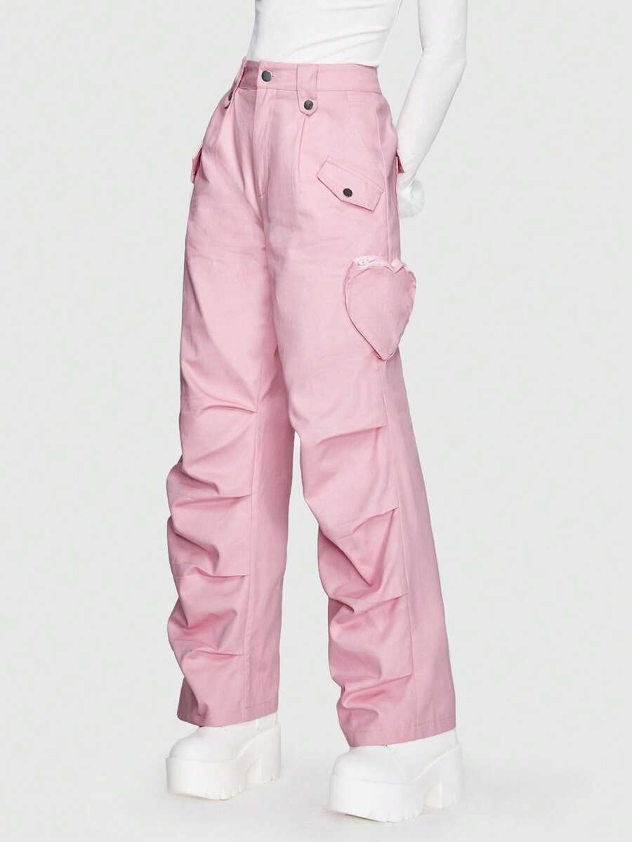 Kawaii Pantalones de pierna ancha con corazón con bolsillo lateral fruncido
